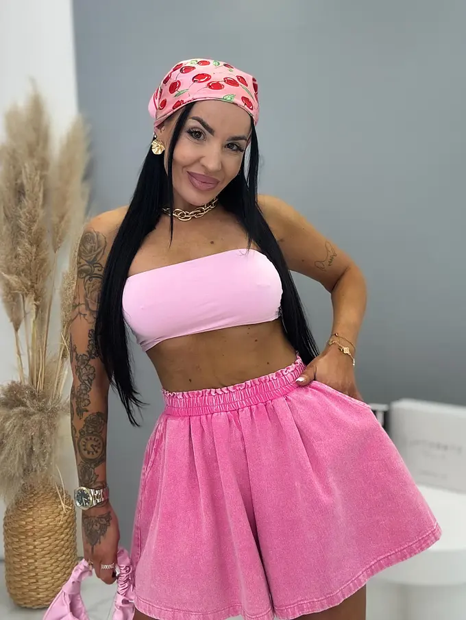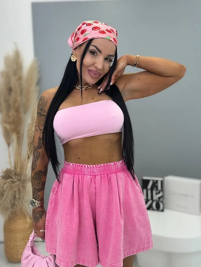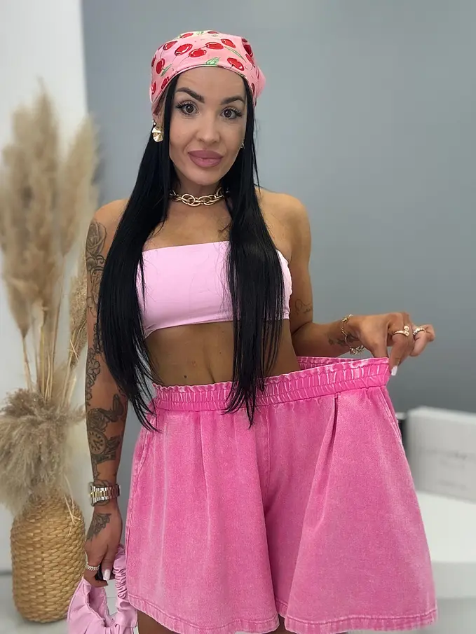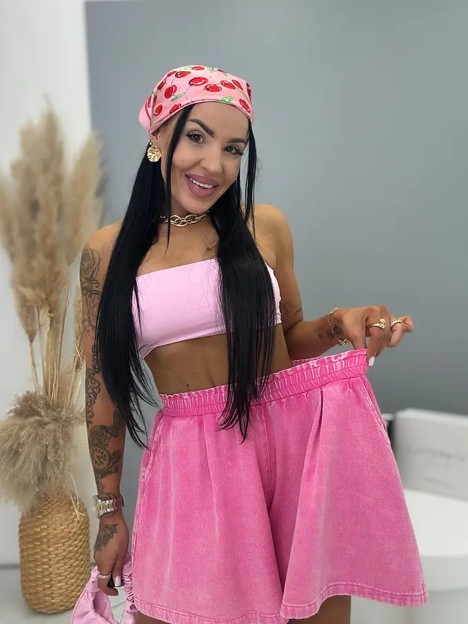 Prémium minőség. A sort anyaga nem elasztikus. Oldalsó zsebekkel és elasztikus derékkal.