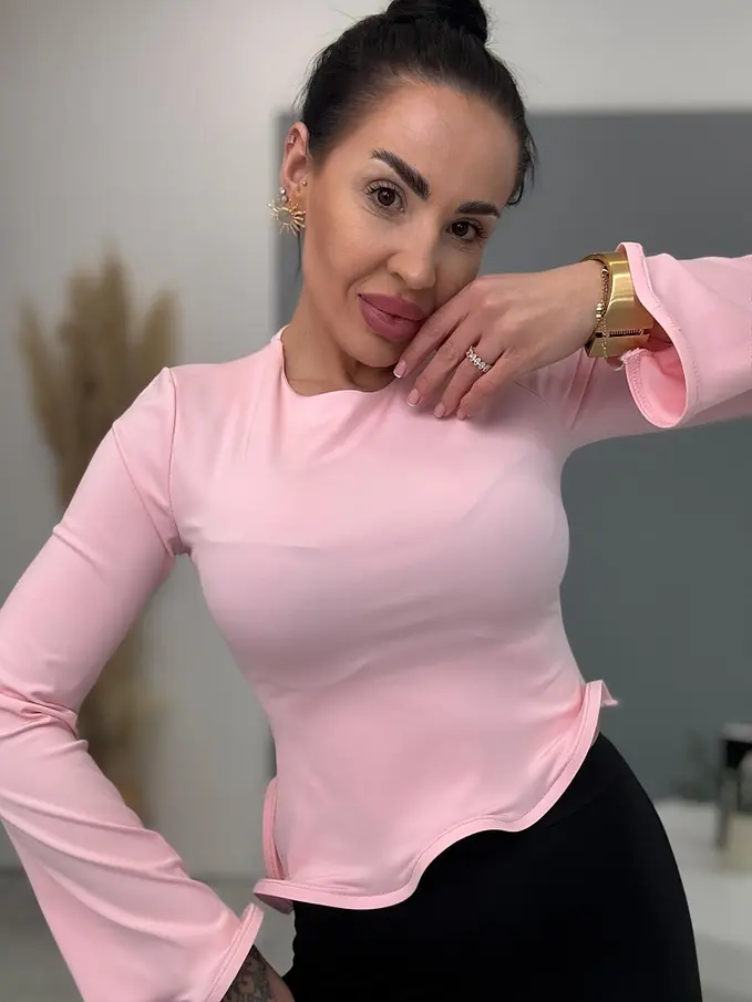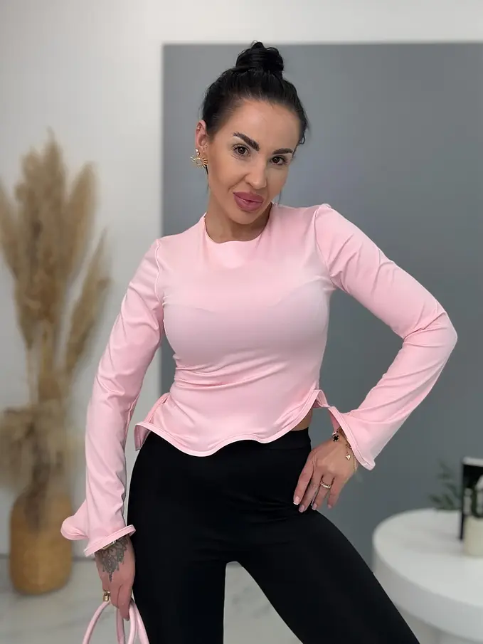 Aszimmetrikus felső, merevített fodrokkal. Igazi különleges, látványos darab, amely kiemel minden outfiitet.