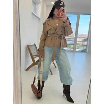 Kellemes anyagból készült. enyhén elasztikus. Övvel és nincs bélése.