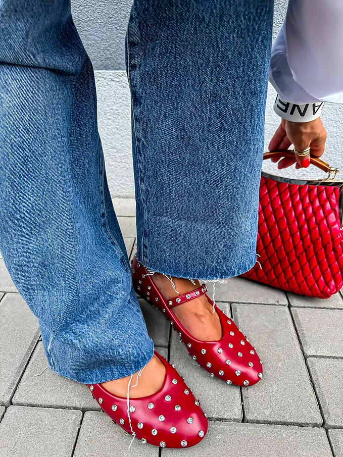 Balerina cipő ezüst színű díszekkel ROSANNA