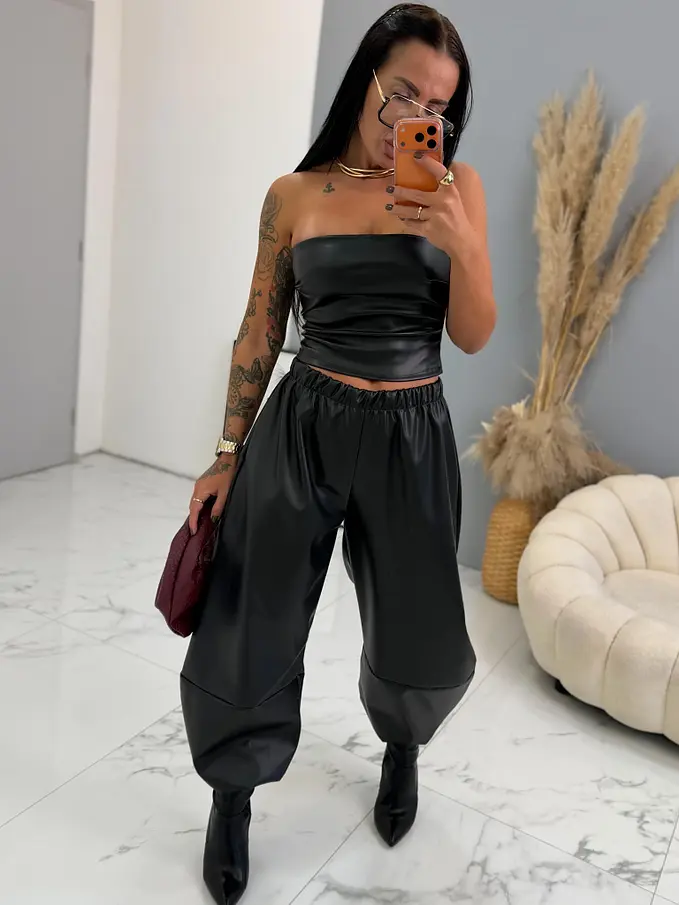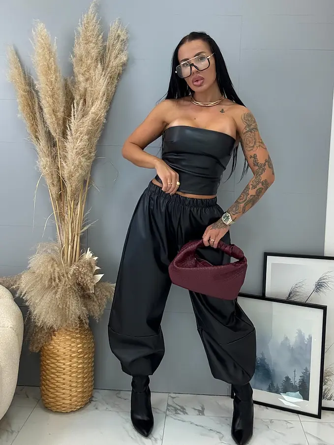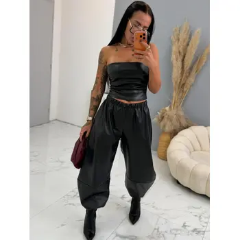 A nadrág kellemes, anyagból készült. A dereka gumis és oldalsó zsebekkel rendelkezik. A nadrág az alján összehúzható.