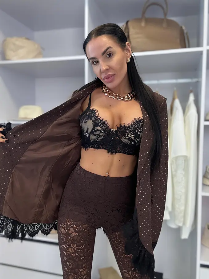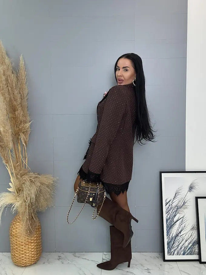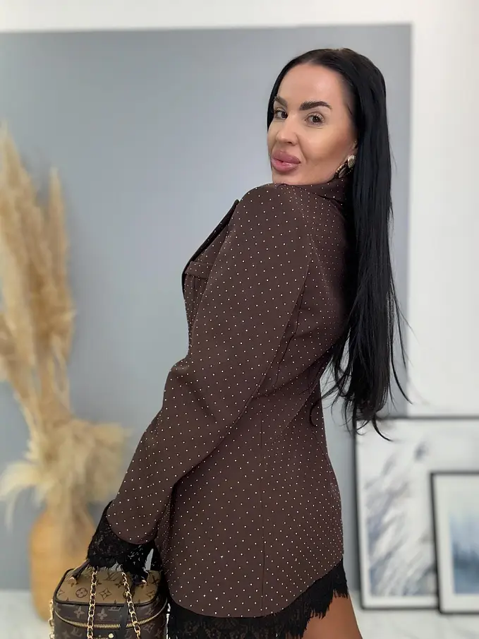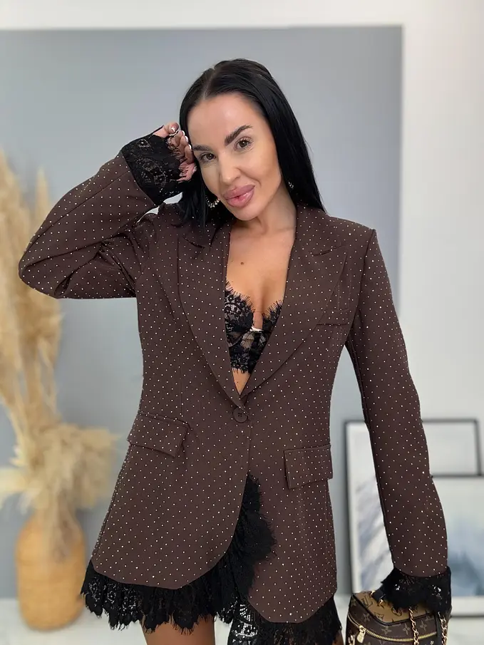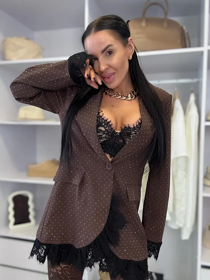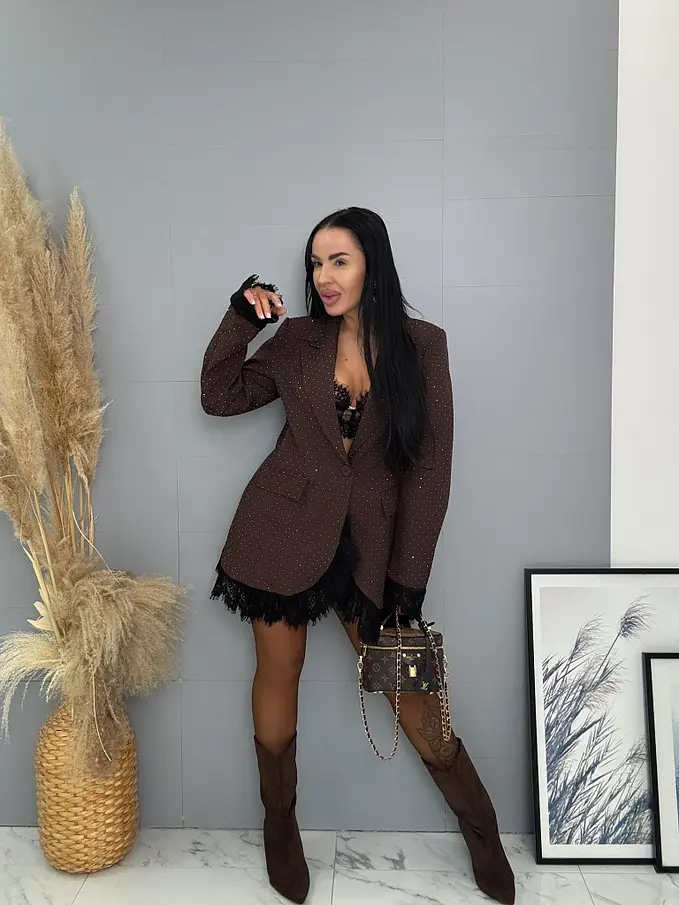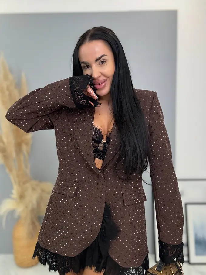 Barna csillogós zakó csipkével SELINA