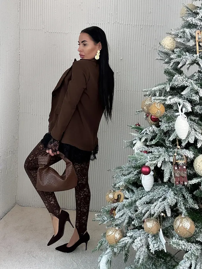 Trendi leggings. Finom csipkéből készült leggings. Széles rugalmas dereka van, és sort fazonú béléssel rendelkezik.