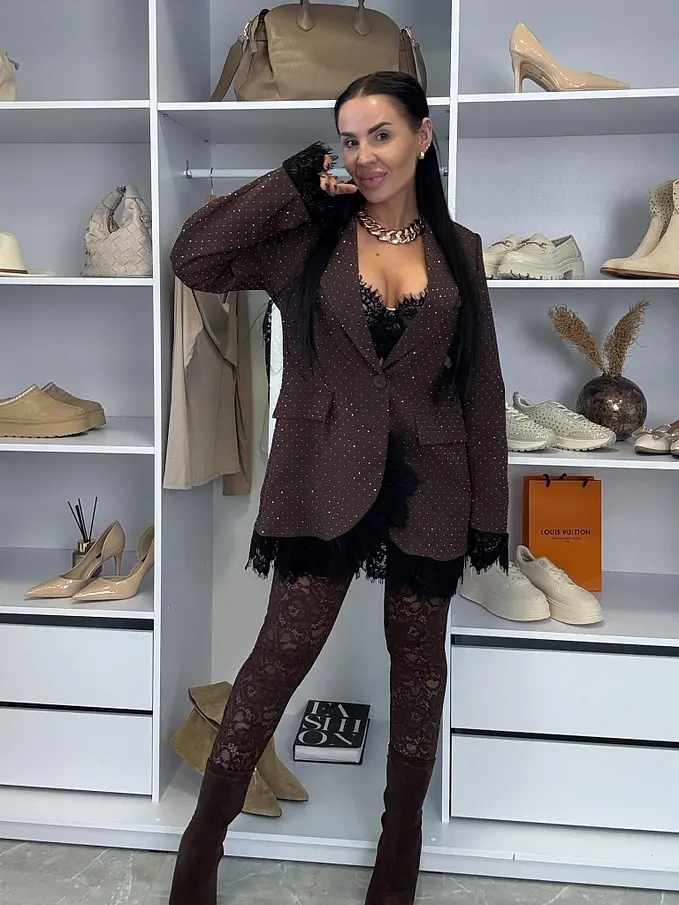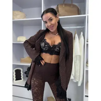 Barna magas derekú csipke leggings PRISINA