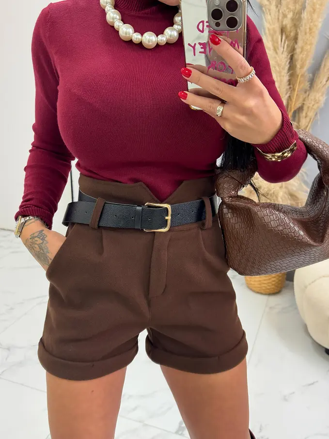 Alakot kiemelő fazonú sort, övvel. Enyhén elasztikus, kellemesen meleg anyagból készült.