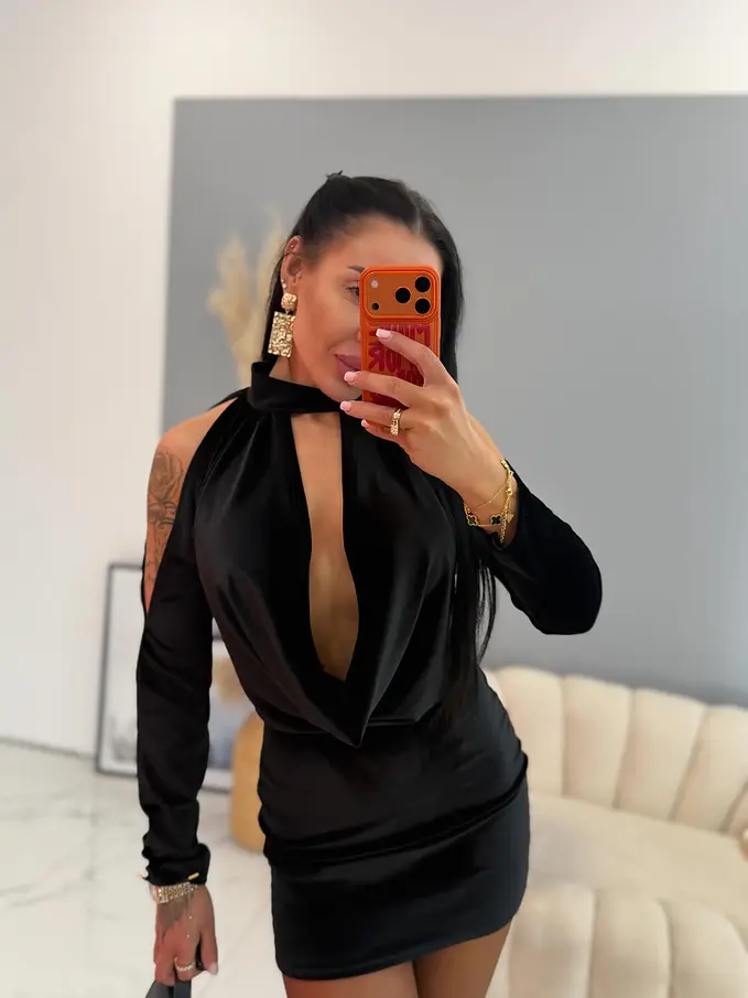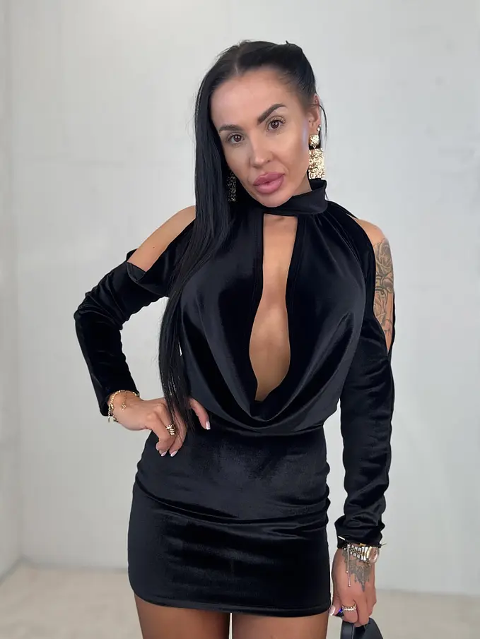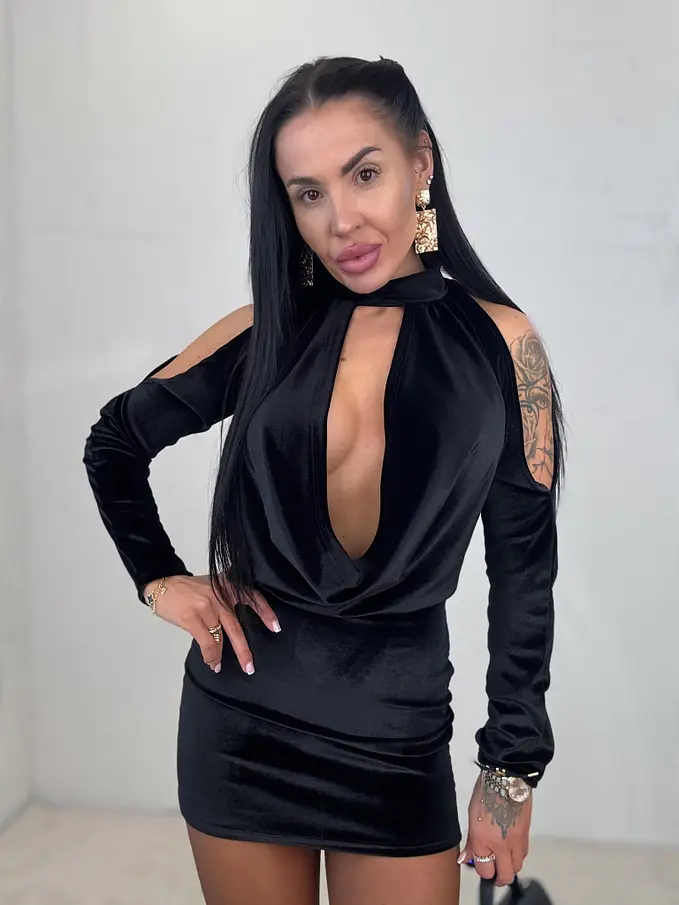 Elegáns bársony ruha. Anyaga eelasztikus. Hátul gombolással záródik.