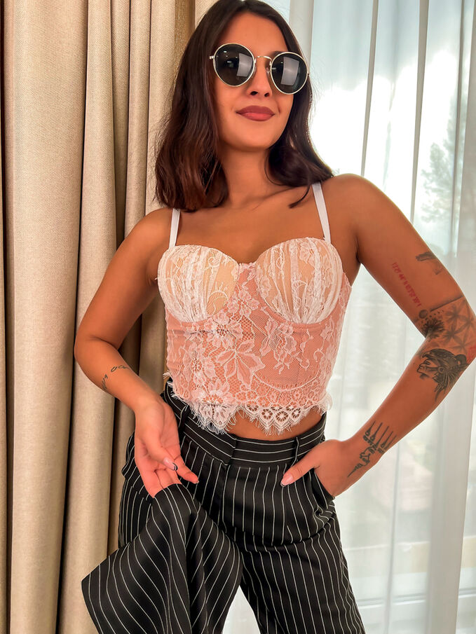 Bézs színű csipkés push-up korzett top DEHLIA