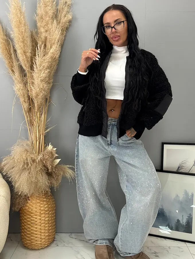 A fekete hajú modell 164 cm magas és 64 kg. M/L méretű ruhákat visel. Méretek: 99 cm - 74 cm - 93 cm.
