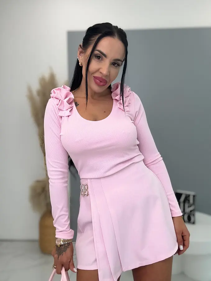 Bordázott anyagú felső vállán fodorral MARILYN