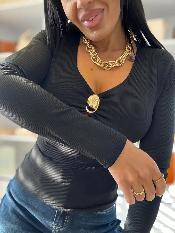 Basic felső, mely tökéletes választás bármilyen eseményre. Anyaga bordázott, elasztikus. A dísz arany színű.