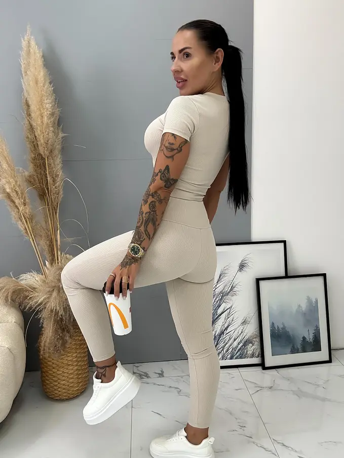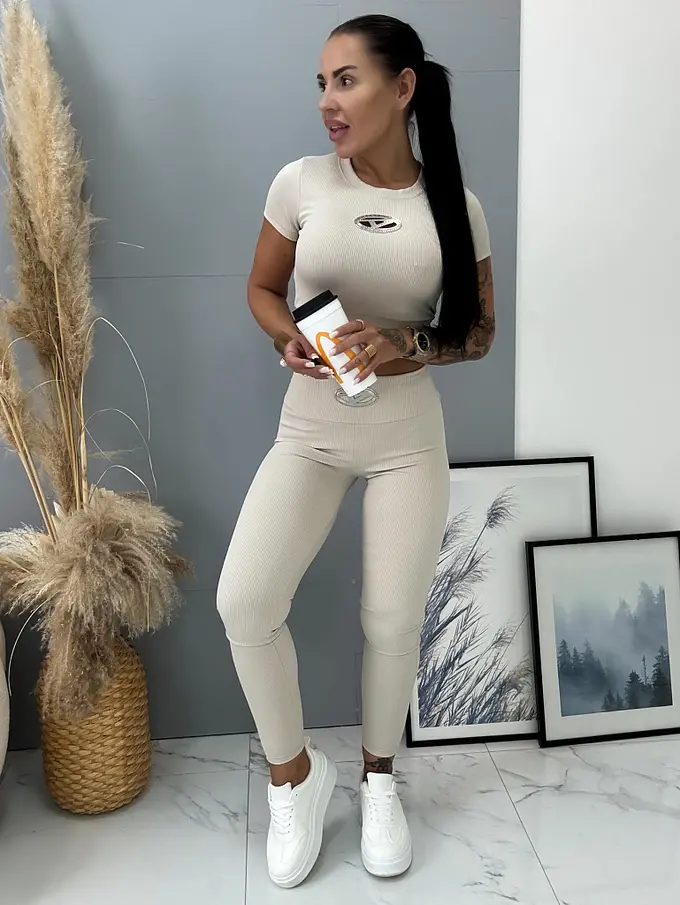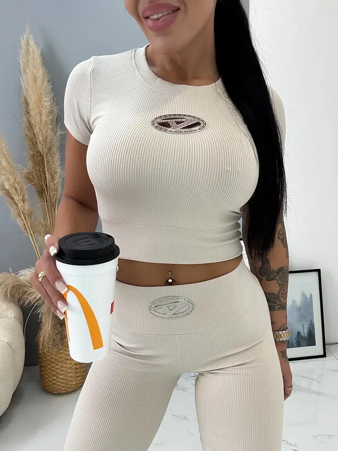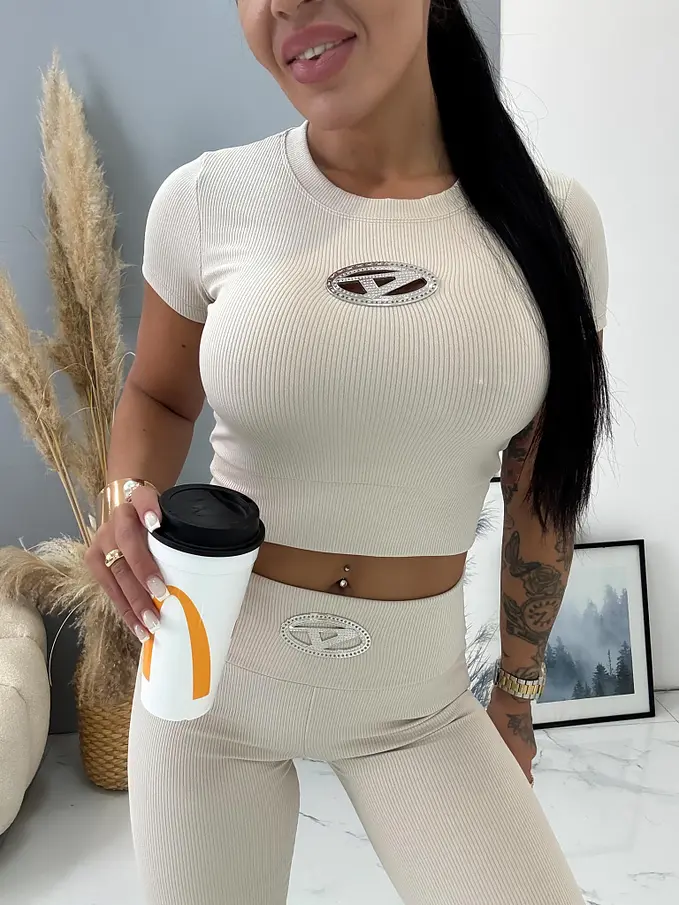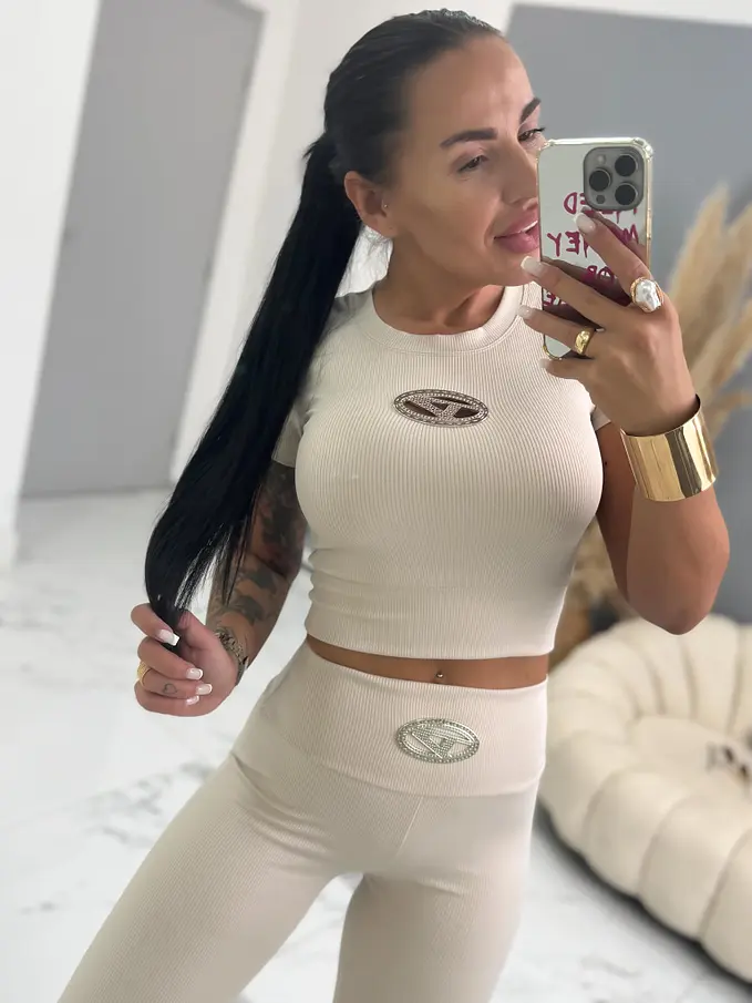 Divatos szett extravagáns hölgyeknek. A szett crop-topból és wide leg nadrágból áll. Anyaga elasztikus. A nadrág dereka elasztikus.