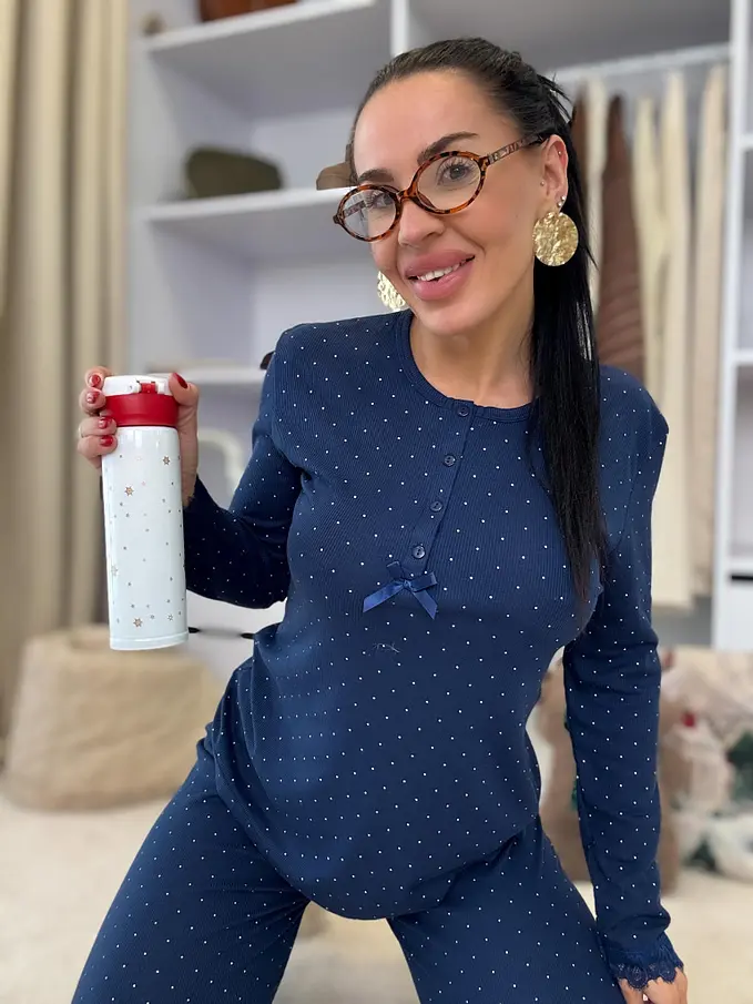 Bordázott pizsama csipkeszegéllyel AVILMA