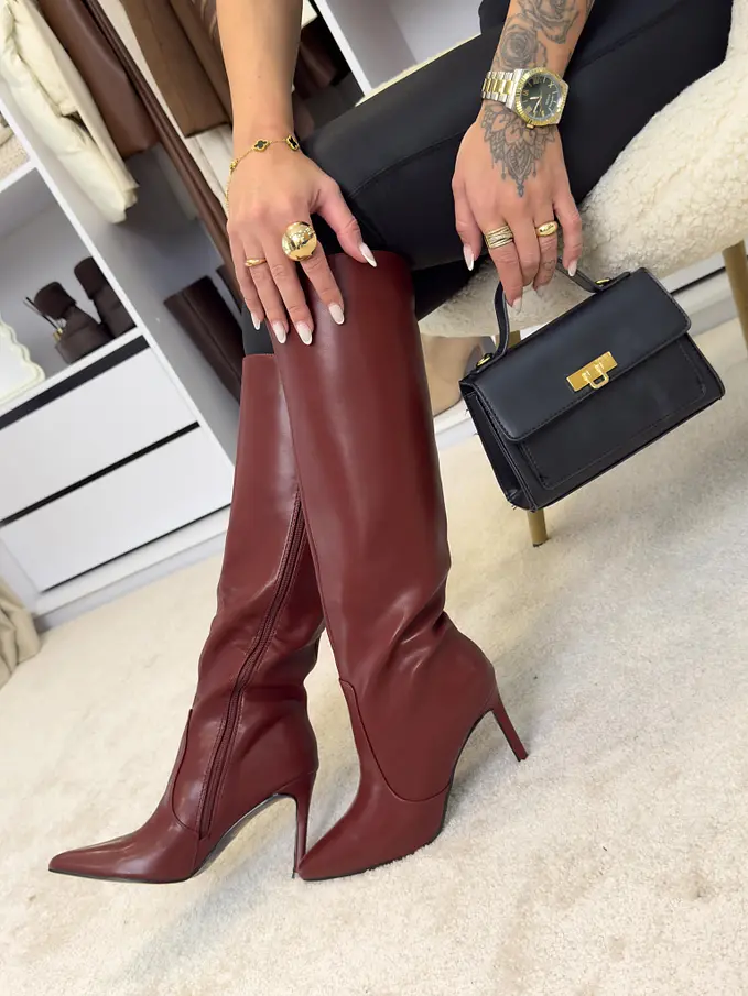 Bordó magasszárú csizma LILOU
