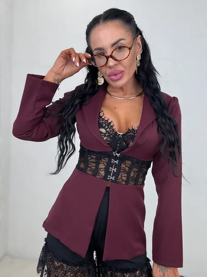 Bordó zakó csipkével AIKO
