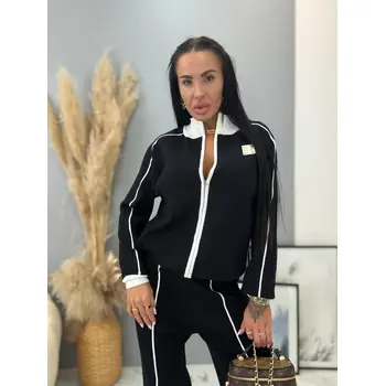 Divatos szett extravagáns hölgyeknek. A szett pulóverből és nadrágból áll. Anyaga elasztikus.
