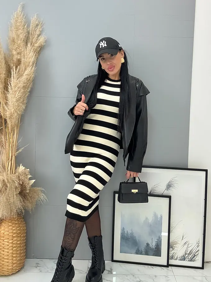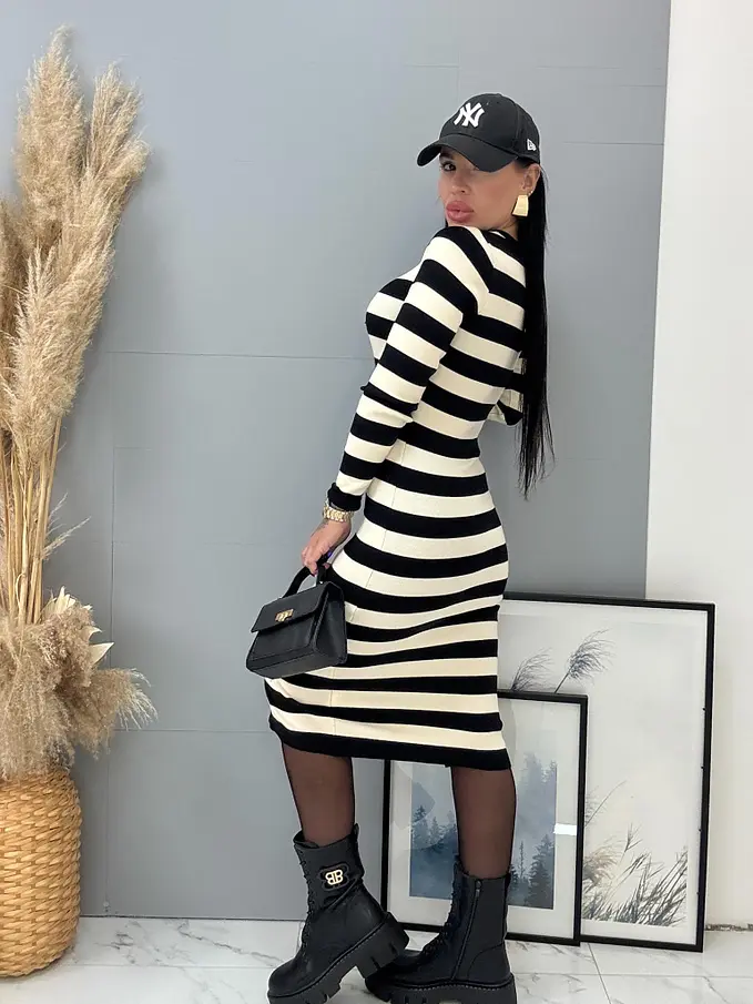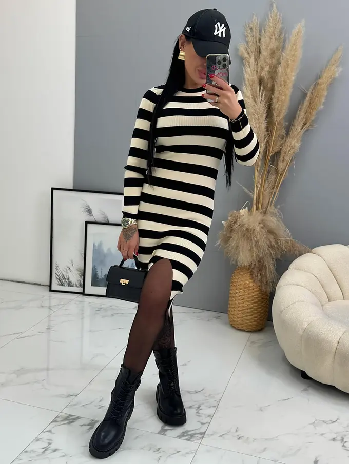 A kötött ruha kellemes puha, elasztikus anyagból készült.