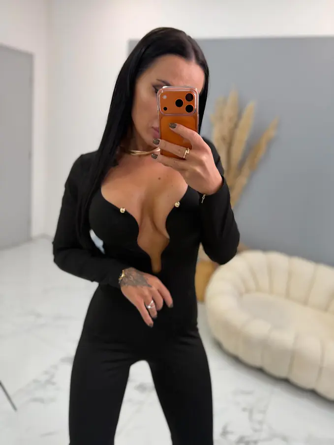 Csodaszép overál, mely tökéletes választás bármilyen eseményre. Anyaga elasztikus. Arany színű merevítő vassal.