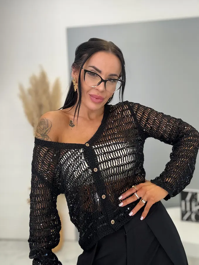 Csillogó hosszú ujjú kardigán ROMA