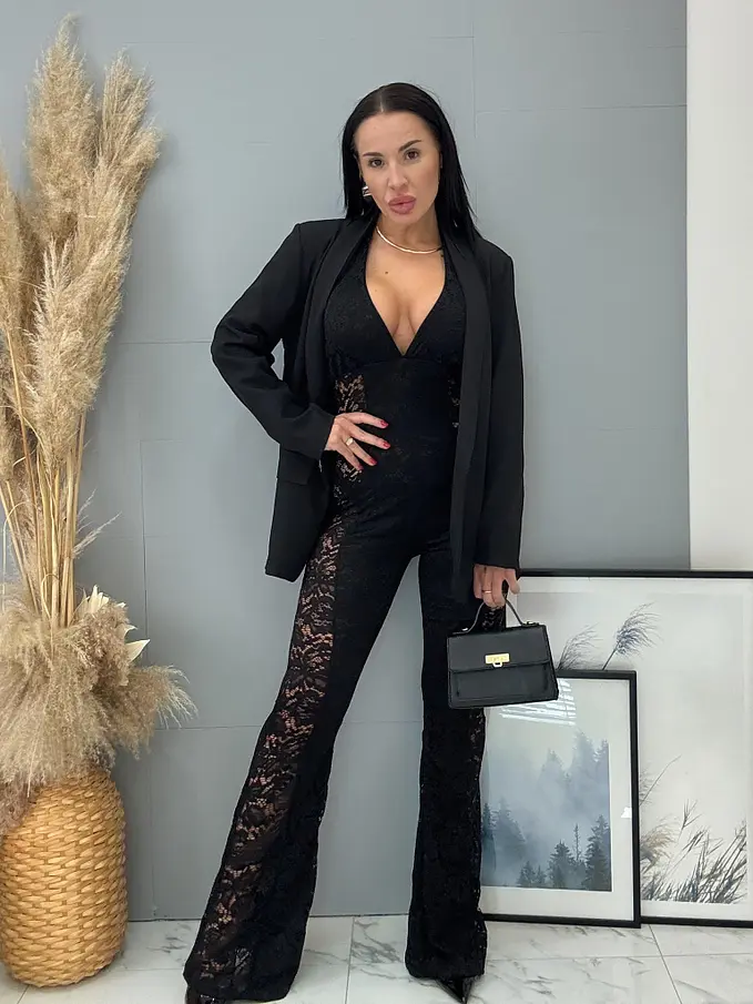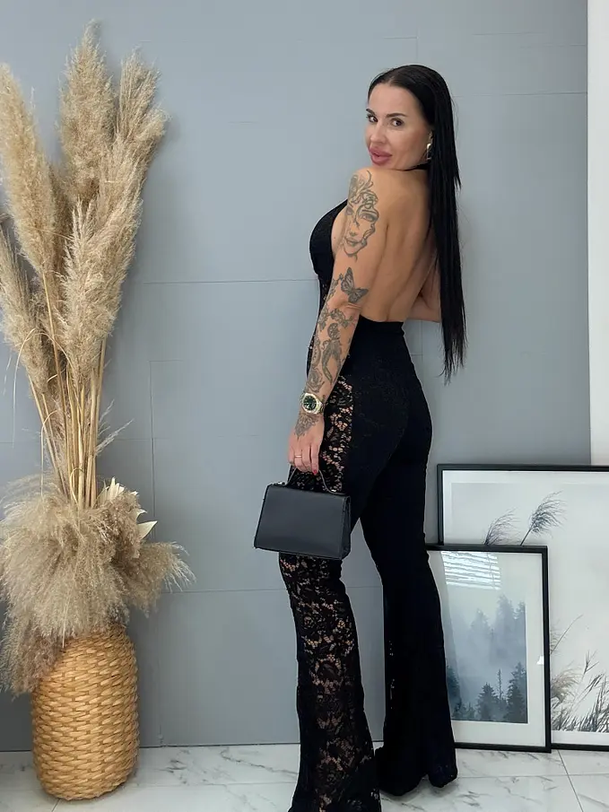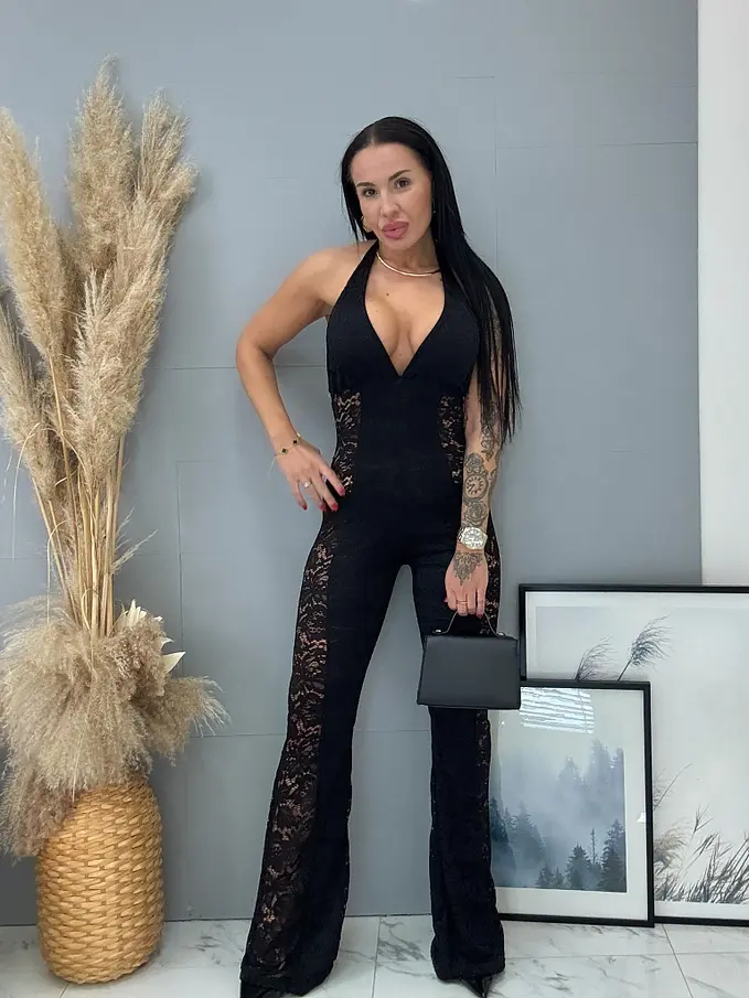 Az overálok a merész stílus és a nőiesség megtestesítői. A modern, nyak körüli megkötős szabás gyönyörűen kiemeli az alakot, miközben a csipkés anyag egyedi és trendi megjelenést kölcsönöz