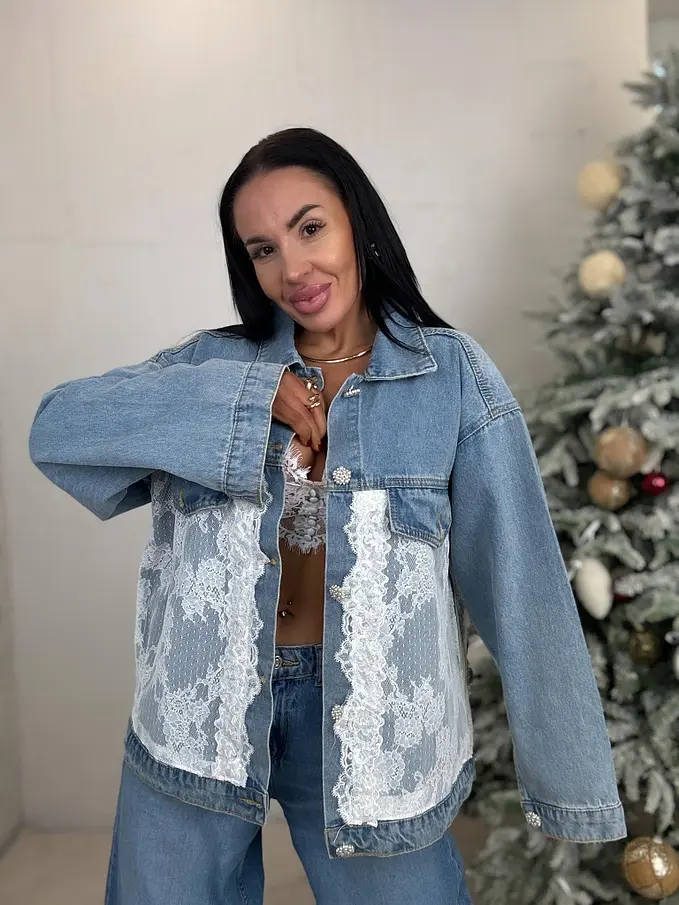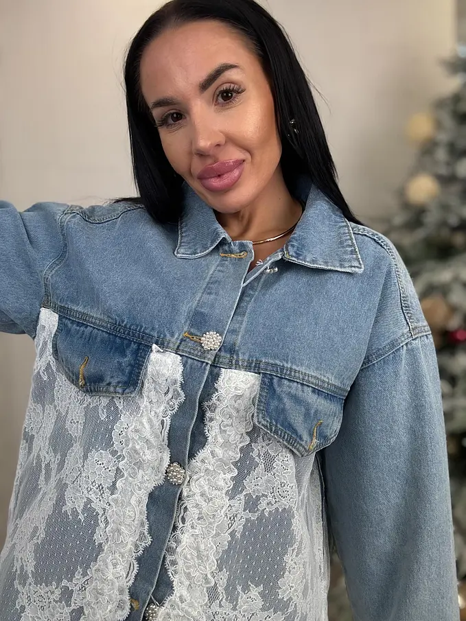 Csipkével díszített farmerdzseki ARRYNA
