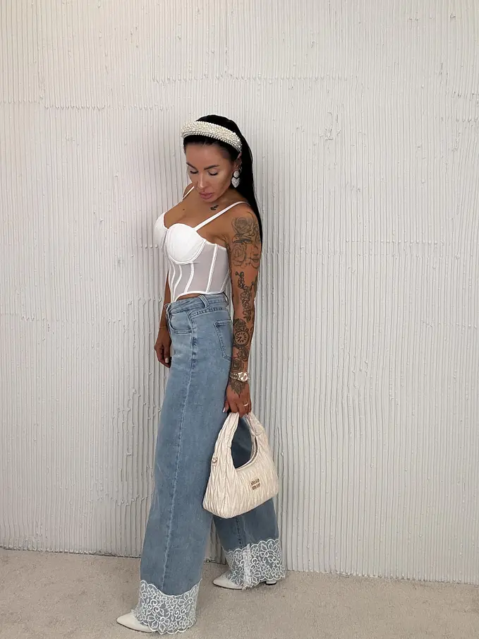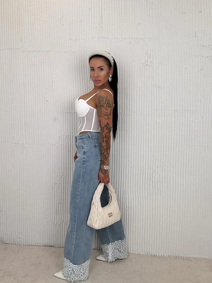 Prémium minőség. Az anyaga rugalmas. Magas derék és csipke díszítéssel.