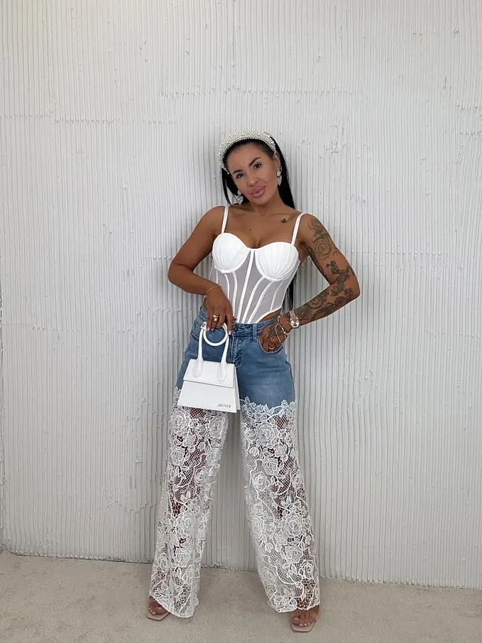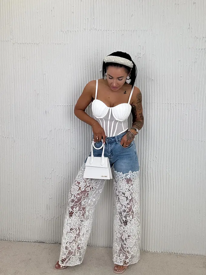 Csipkével díszített wide-leg farmer ERMINA