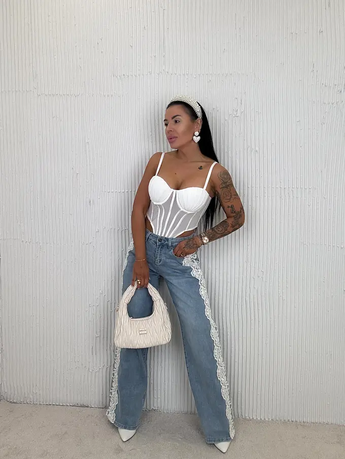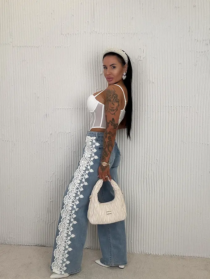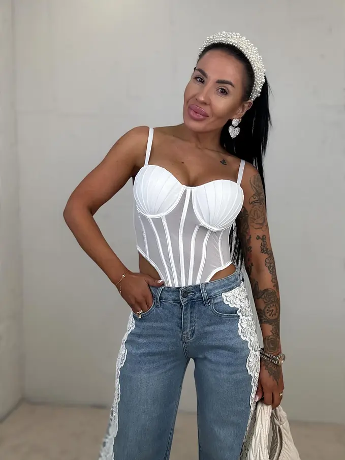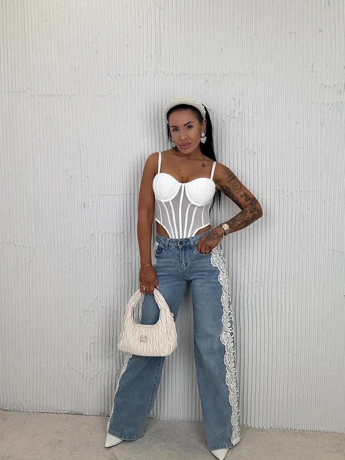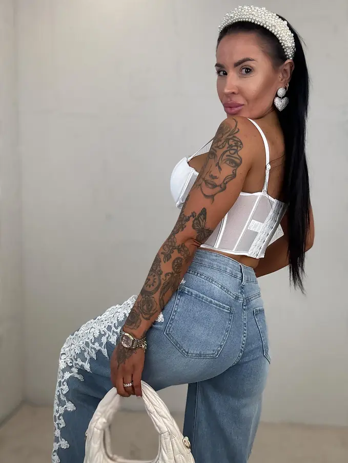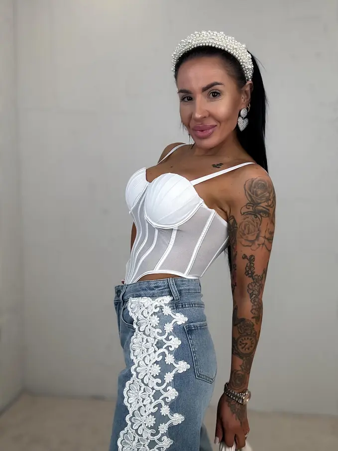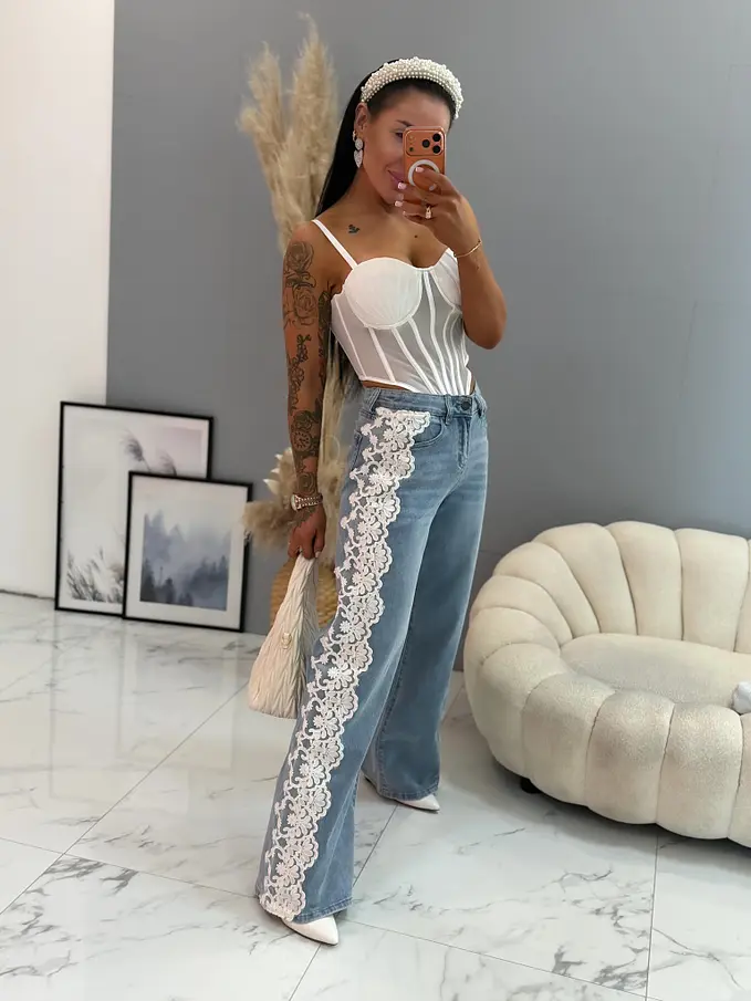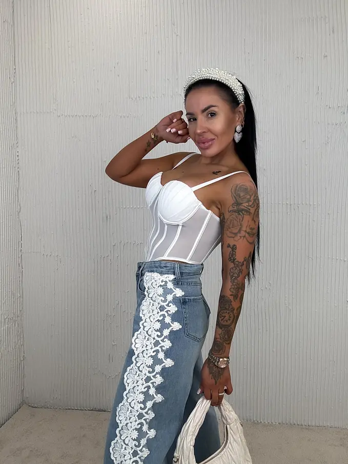 Prémium minőség. Az anyag rugalmas. Magas derék. Csipke díszítés oaz oldalán. A gomb ezüst színű.