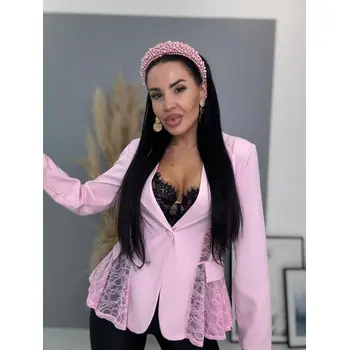 Női blézer kellemes anyagból. Az anyag nem rugalmas. A blézer gombbal záródik. Vállrésznél válltöméssel rendelkezik. Átlátszó csipkebetétekkel. A zakó bélelt.