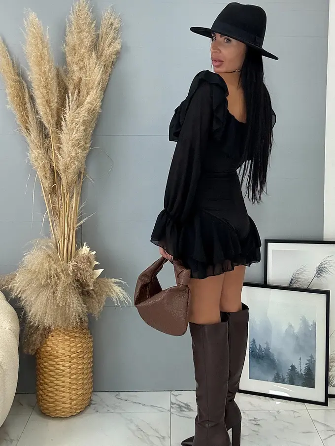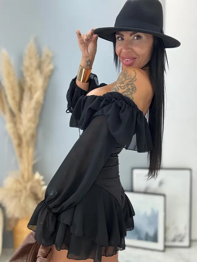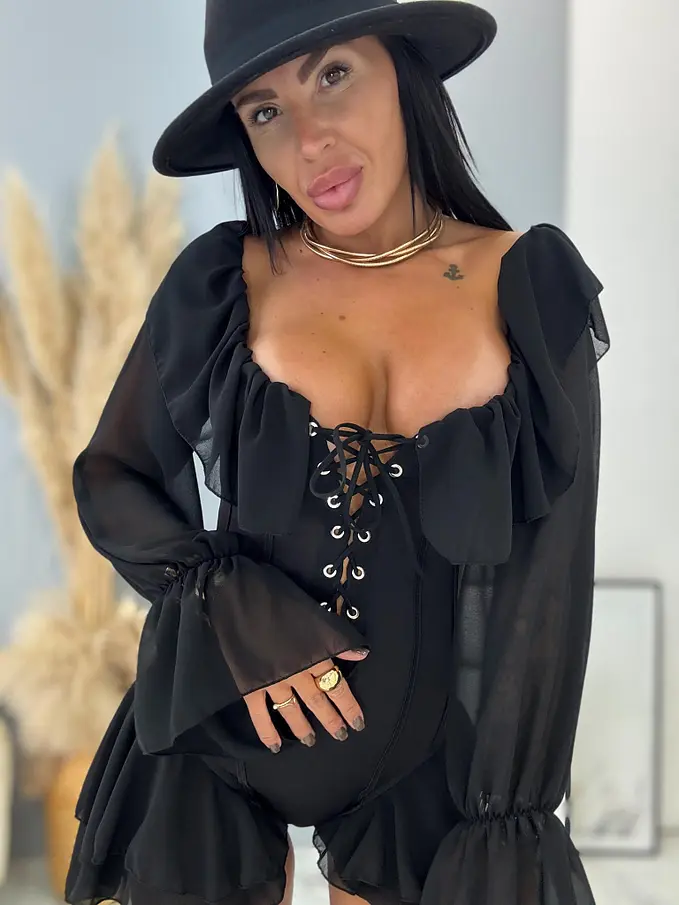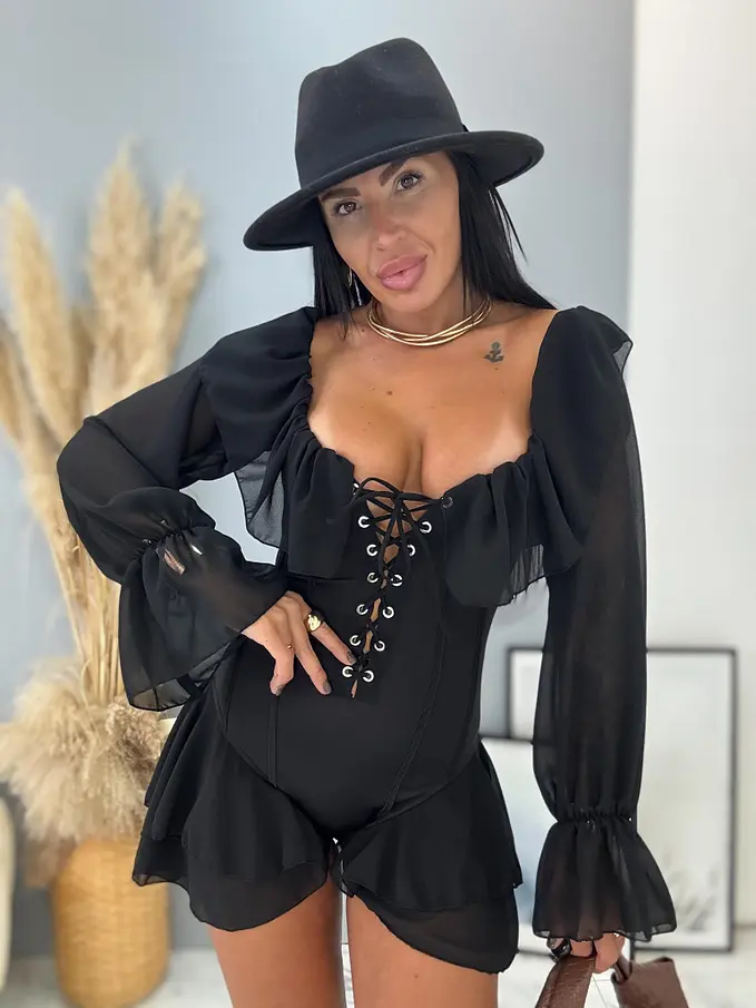 Ejtett vállú fűzős overál fodrokkal MINDY