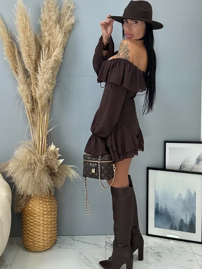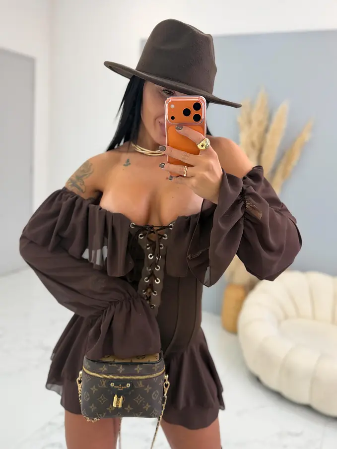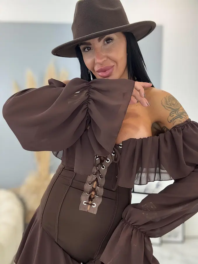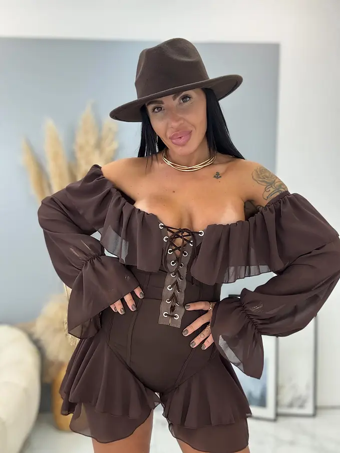 Ejtett vállú fűzős overál fodrokkal MINDY