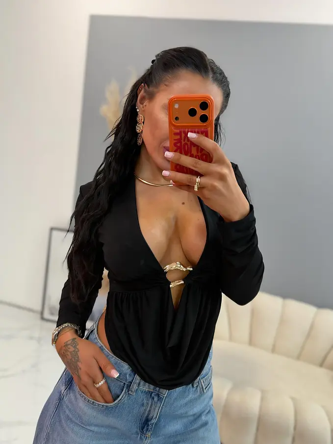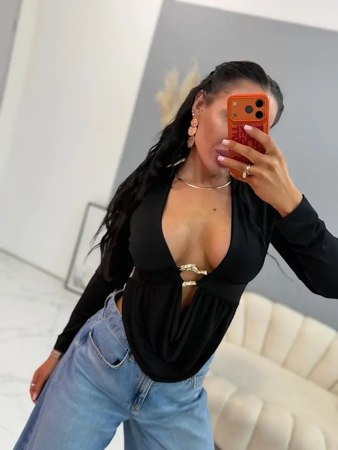 Felső, mely tökéletes választás bármilyen eseményre. Anyaga hűsítő, elasztikus. A dísz arany színű.
