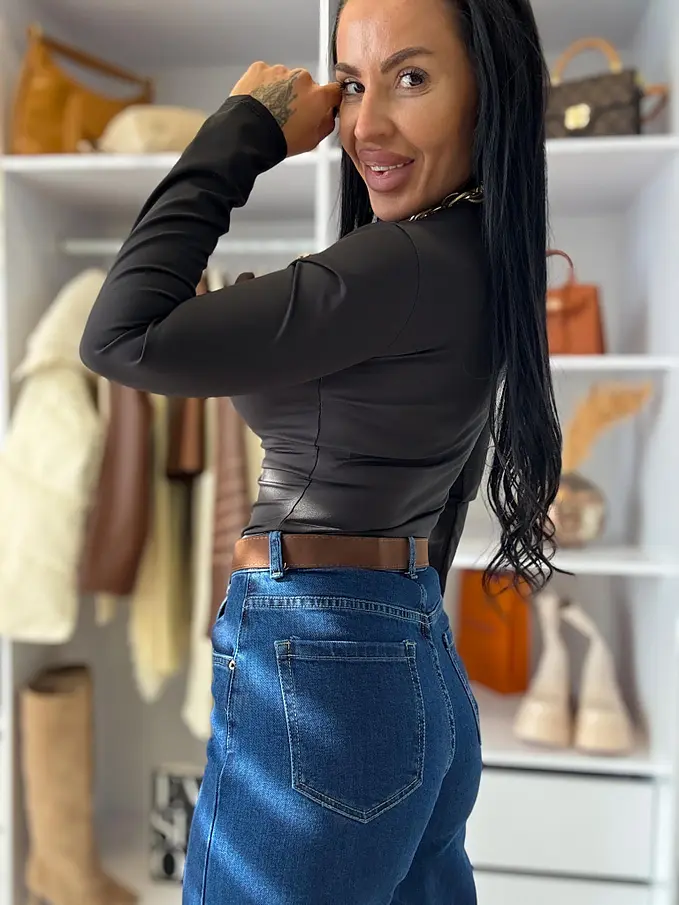 Elasztikus fekete felső arany színű dísszel ANESSA