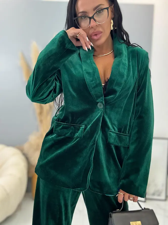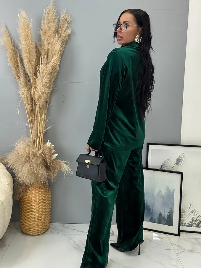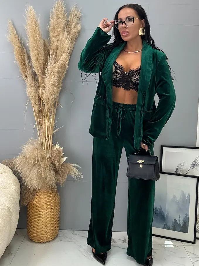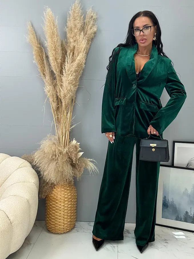 Női elegáns együttes a legújabb kollekcióból. Zakóból és wide-leg nadrágból áll. Anyaga kellemes, elasztikus.