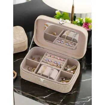 Funkcionális doboz rekeszekkel és helyekkel nyakláncok, fülbevalók és gyűrűk számára.