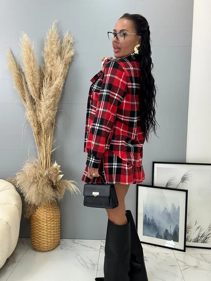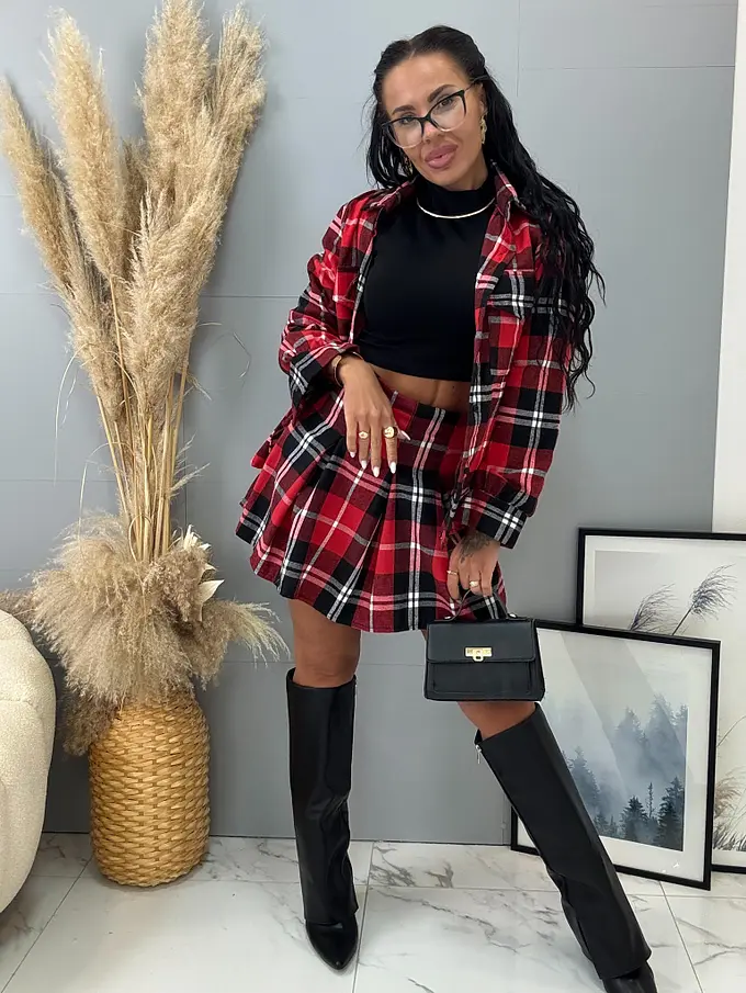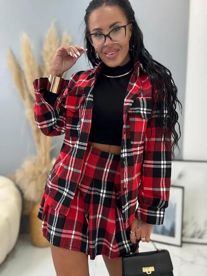 Divatos szett extravagáns hölgyeknek. A szett ingből és szoknyából áll. Anyaga kellemes, meleg. Az ing univerzális méretü, míg a szoknya méretezett S-től, L-ig.
