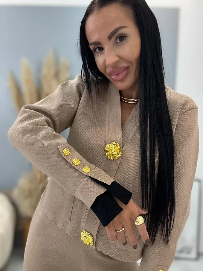 Női elegáns együttes a legújabb kollekcióból. Anyaga kellemes.