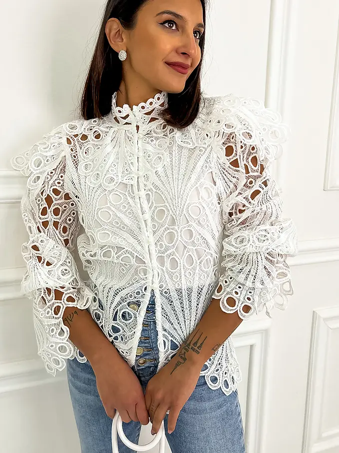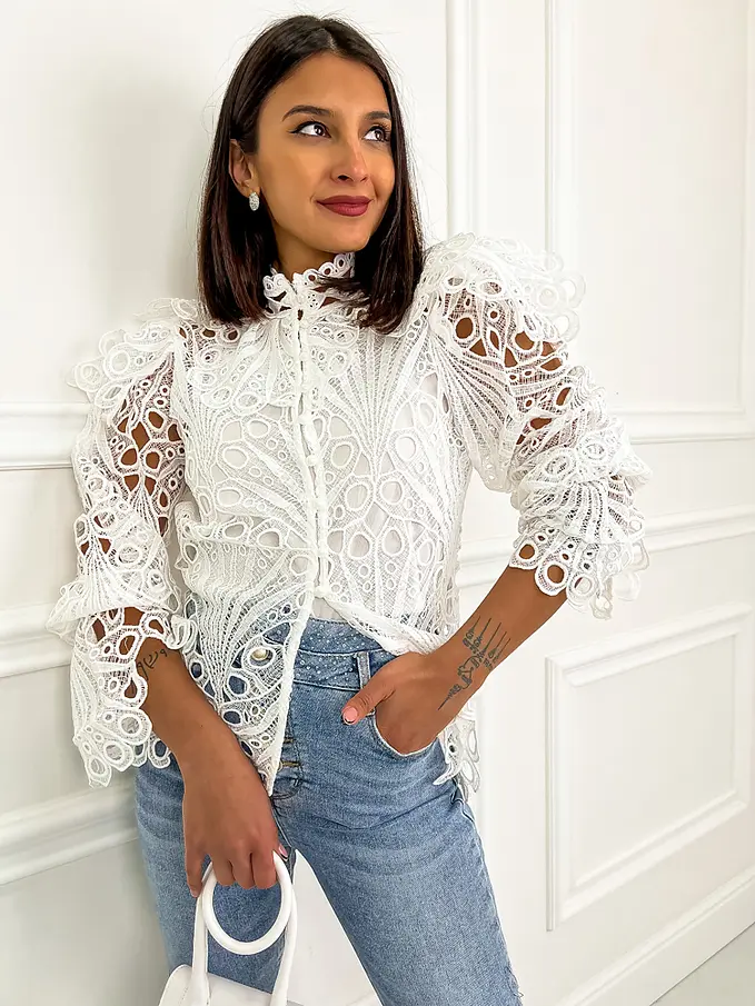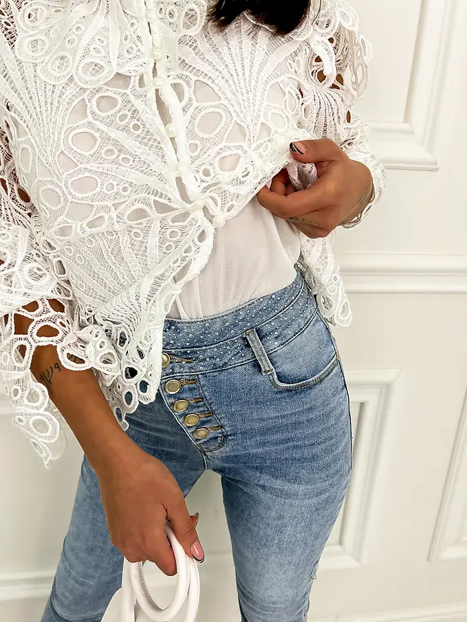 A barna hajú modell 158 cm magas és 50 kg. S méretű ruhákat visel.