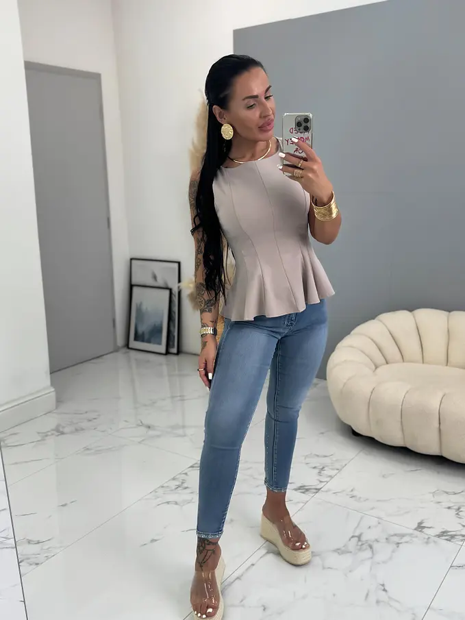 A blúz kényelmes elasztikus anyagból készült. Oldalán cipzárral.