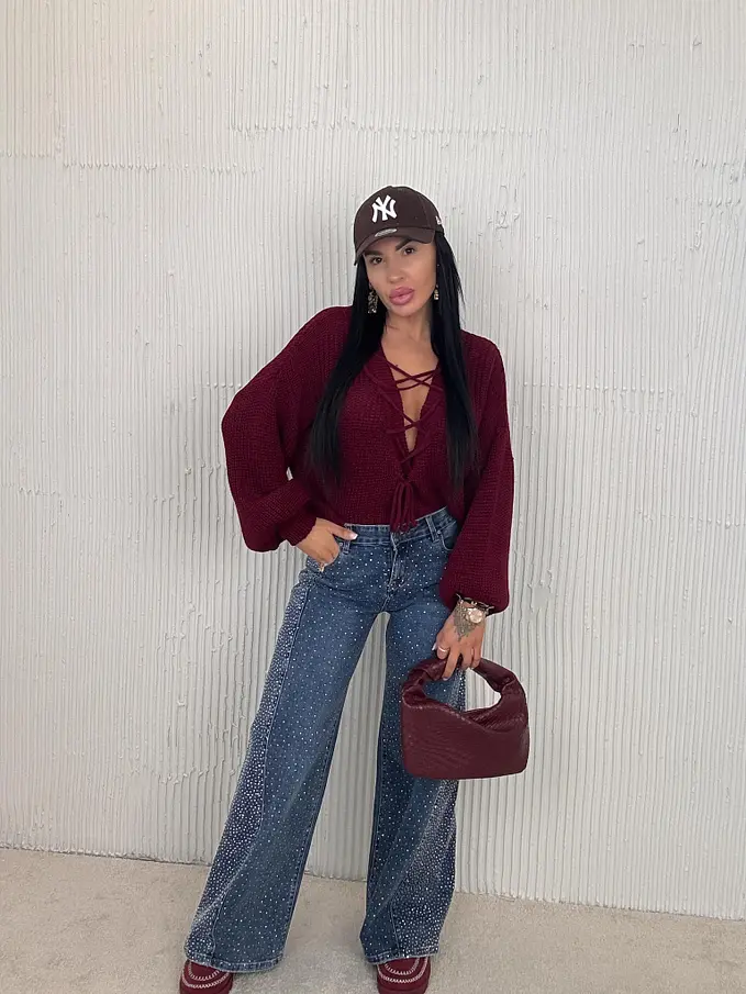 Elöl fűzős kötött pulóver ZAFIRA