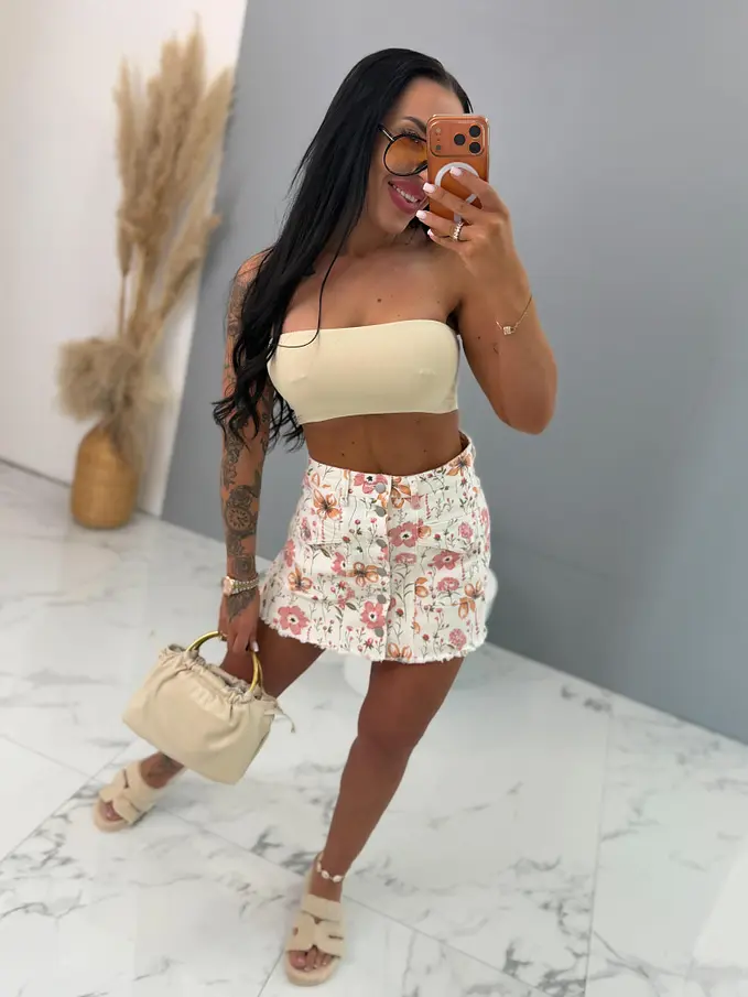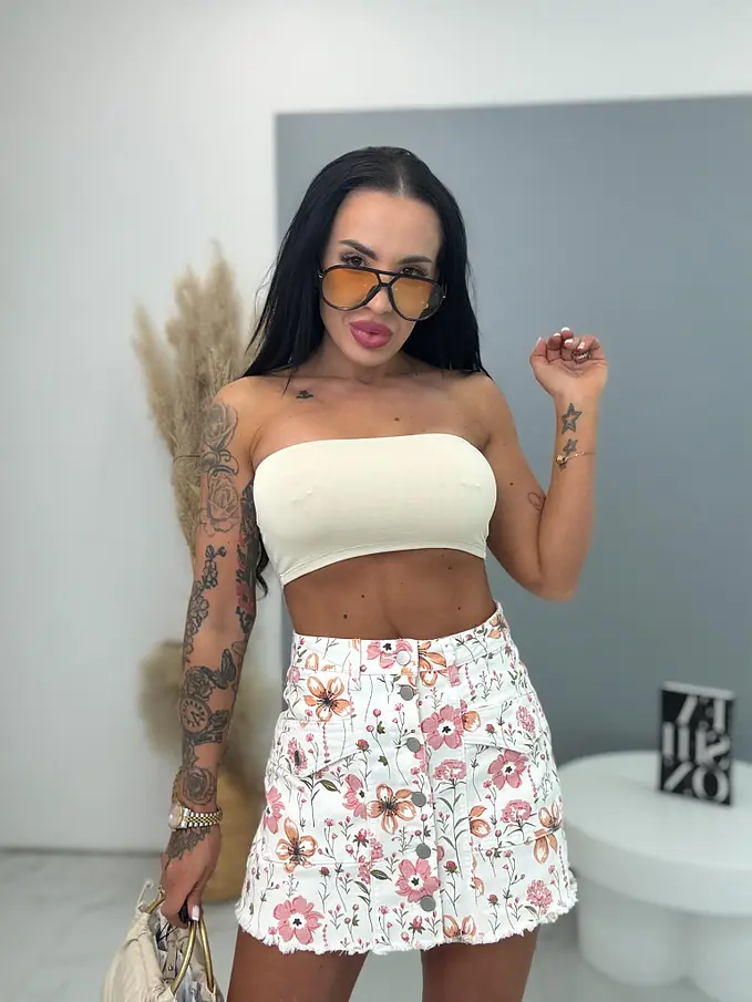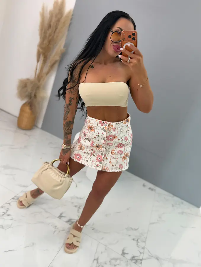 Elöl gombos virágmintás farmer skort NANNY