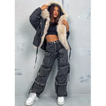 A barna hajú modell 158 cm magas és 50 kg. XS méretű ruhákat visel.