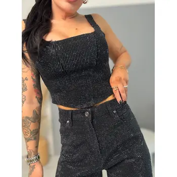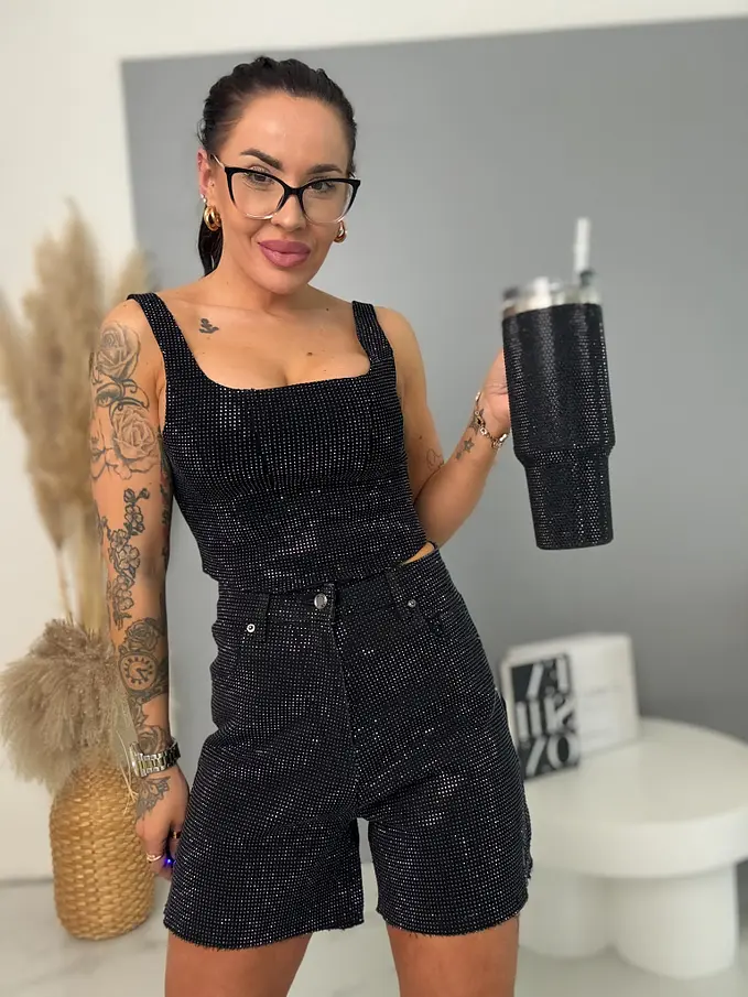 Farmer crop top kövecskékkel díszítve DIAMOND BLACK
