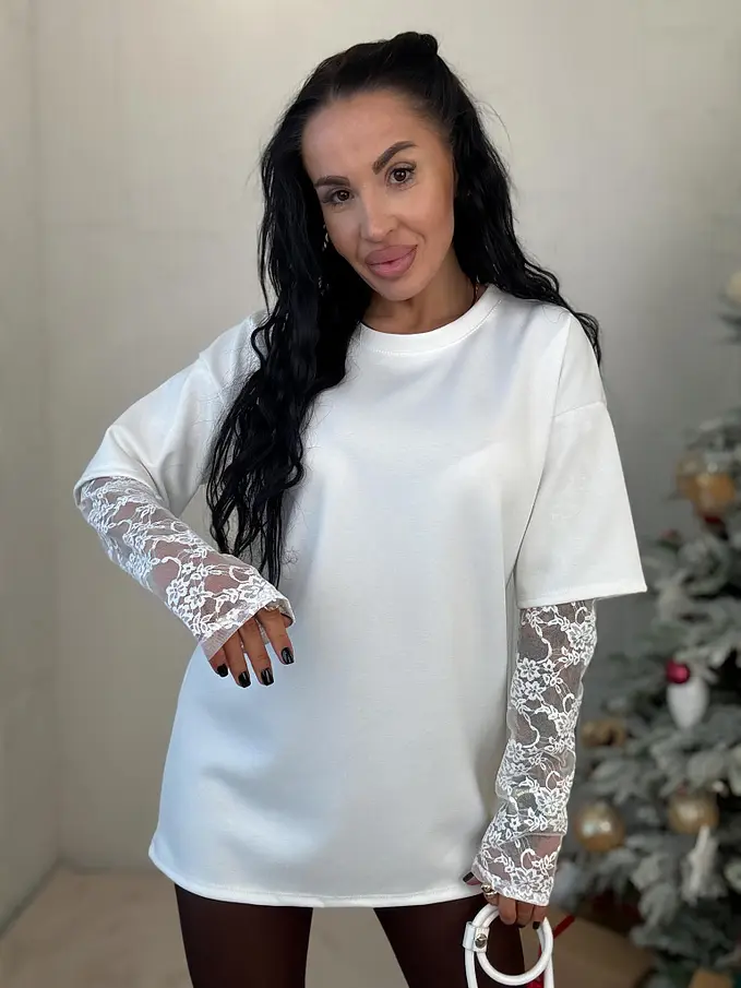 Fehér pulóver csipkével KATHIE