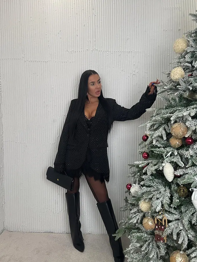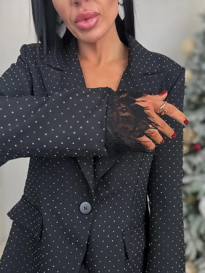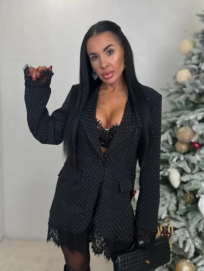 Fekete csillogós zakó csipkével SELINA