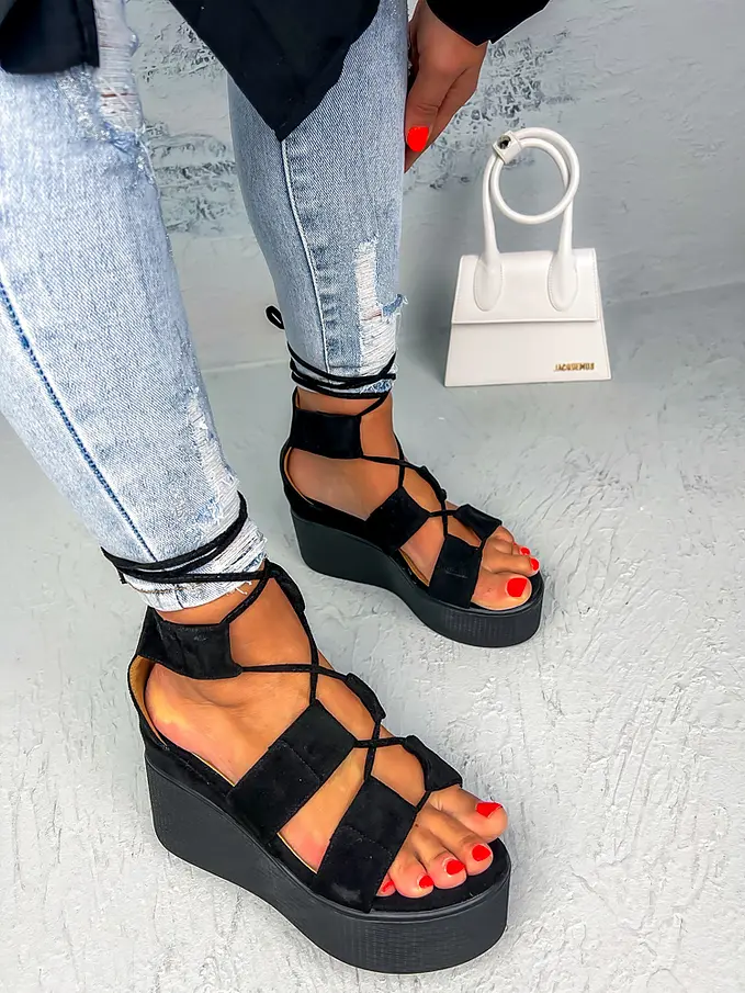 Fekete felkötős platformos szandál DAPHNE
