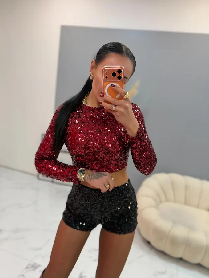 Fekete flitteres rövidnádrág SOLIRA