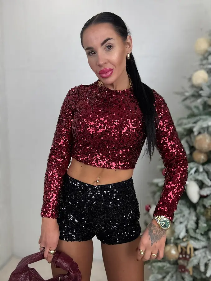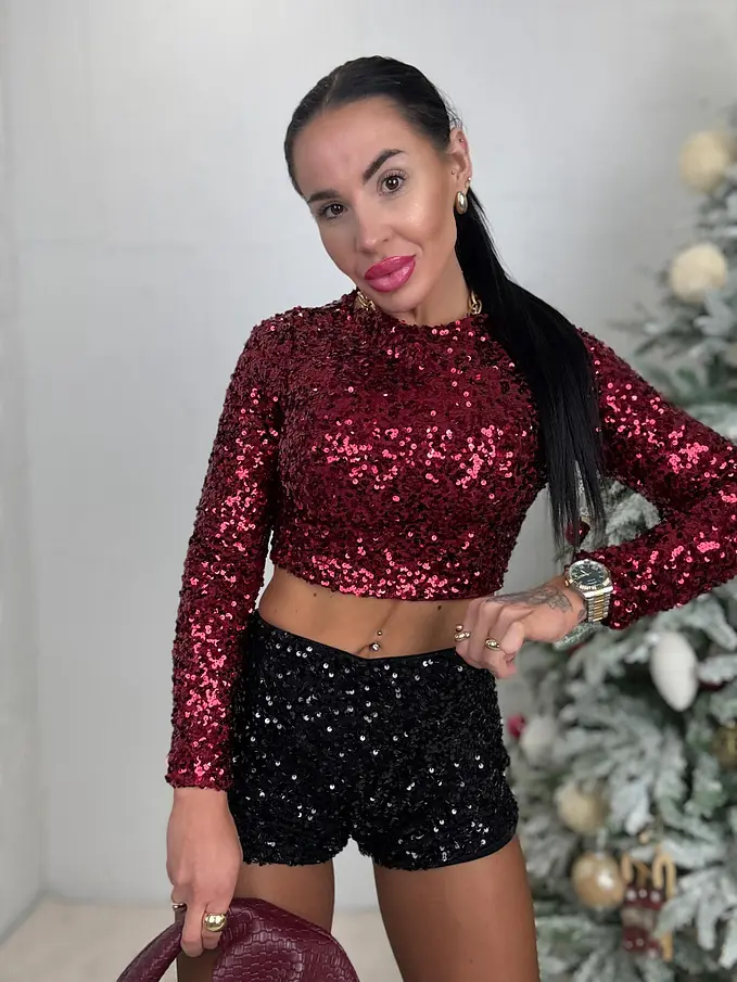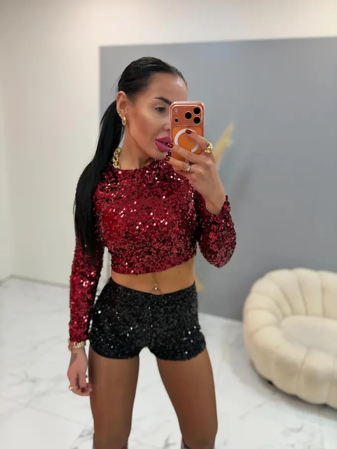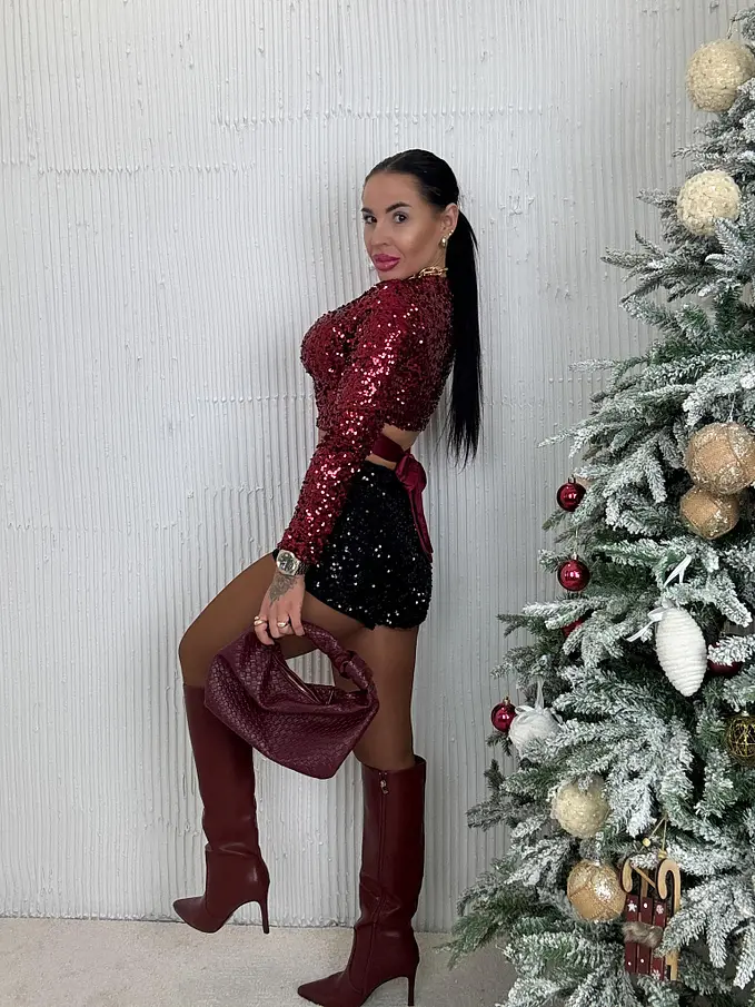 Alakot kiemelő, fazonú flitteres sort. Elasztikus anyagból készült.