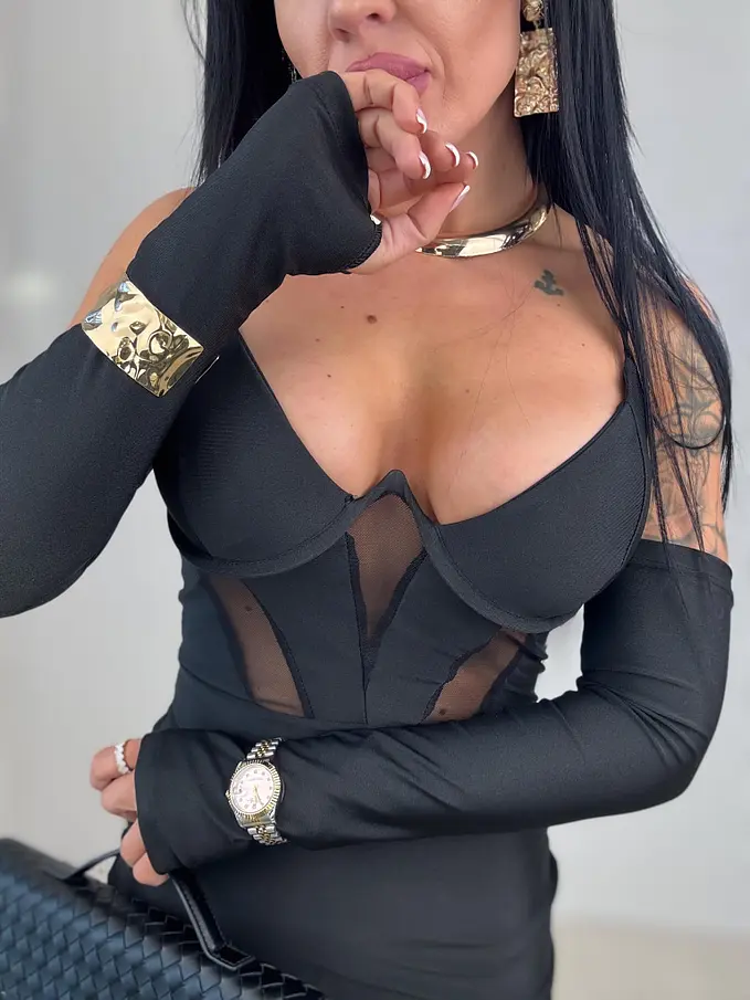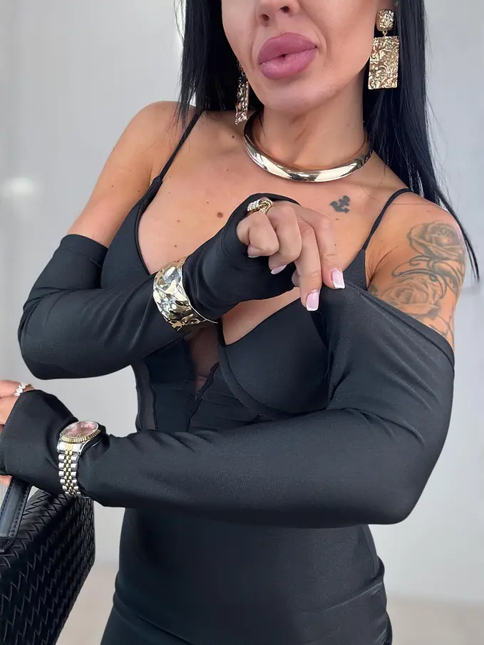 A ruha kellemes anyagból készült. Elasztikus. A része egy beépített, szivacsos melltartó is.