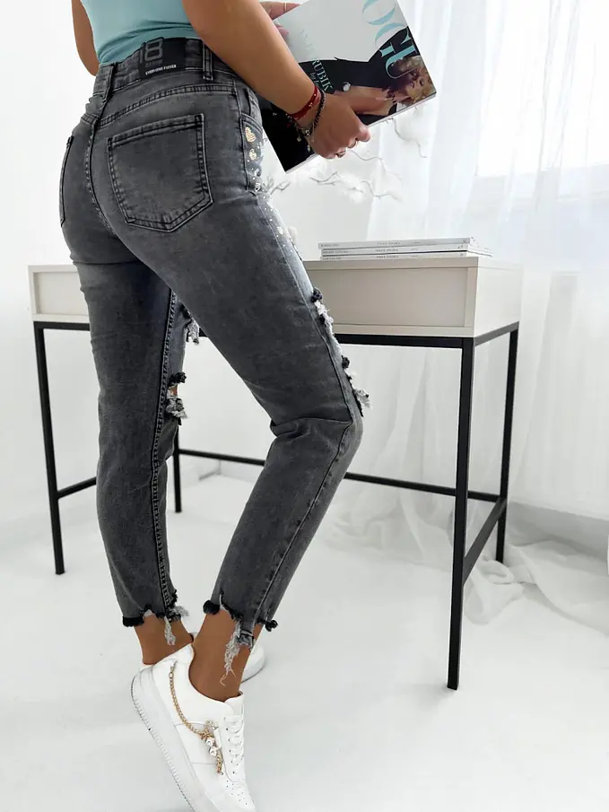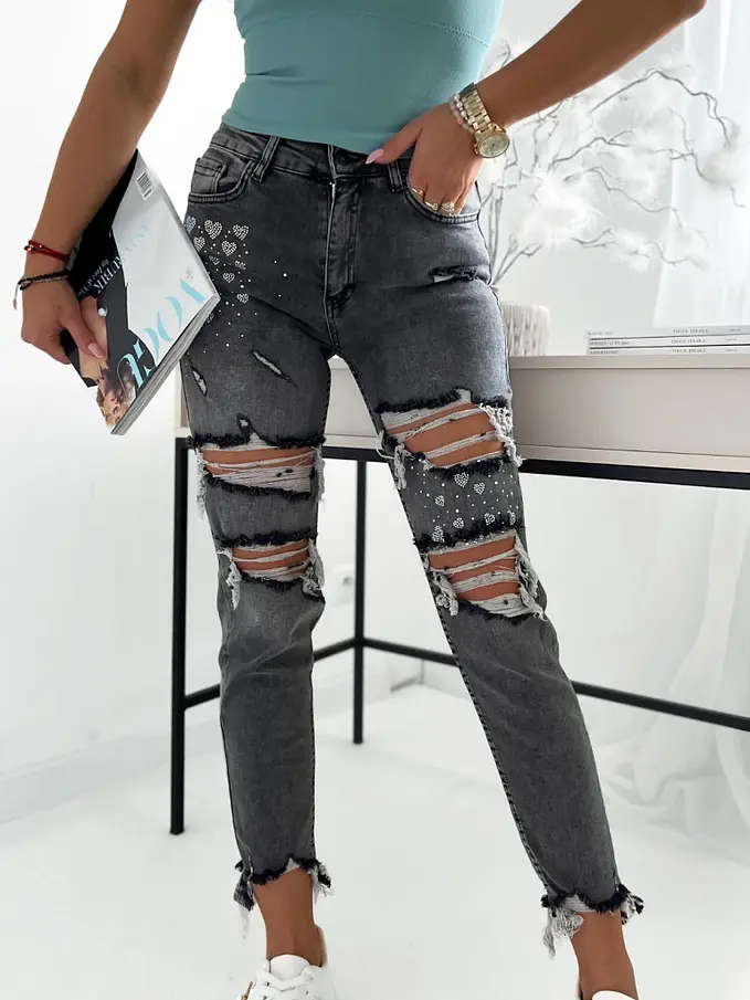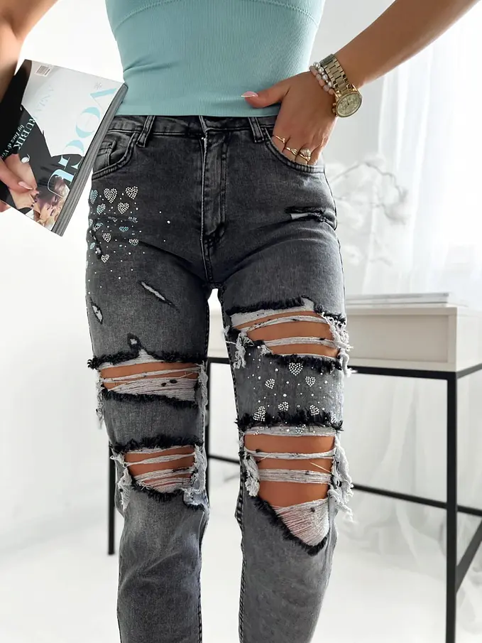 Fekete szaggatott fashion farmer