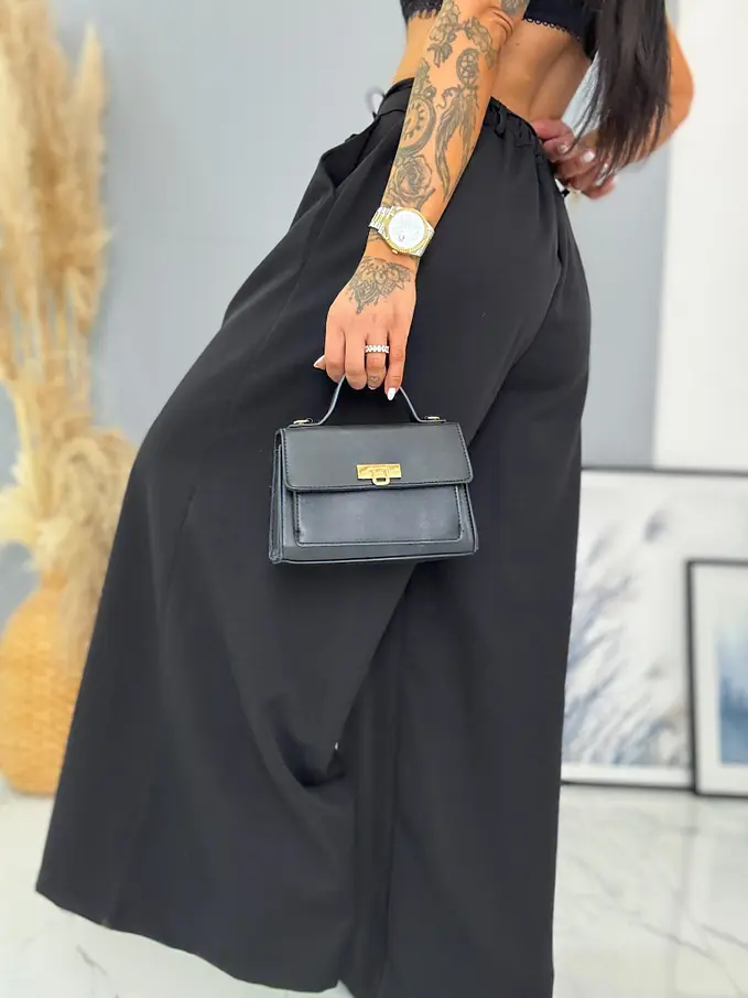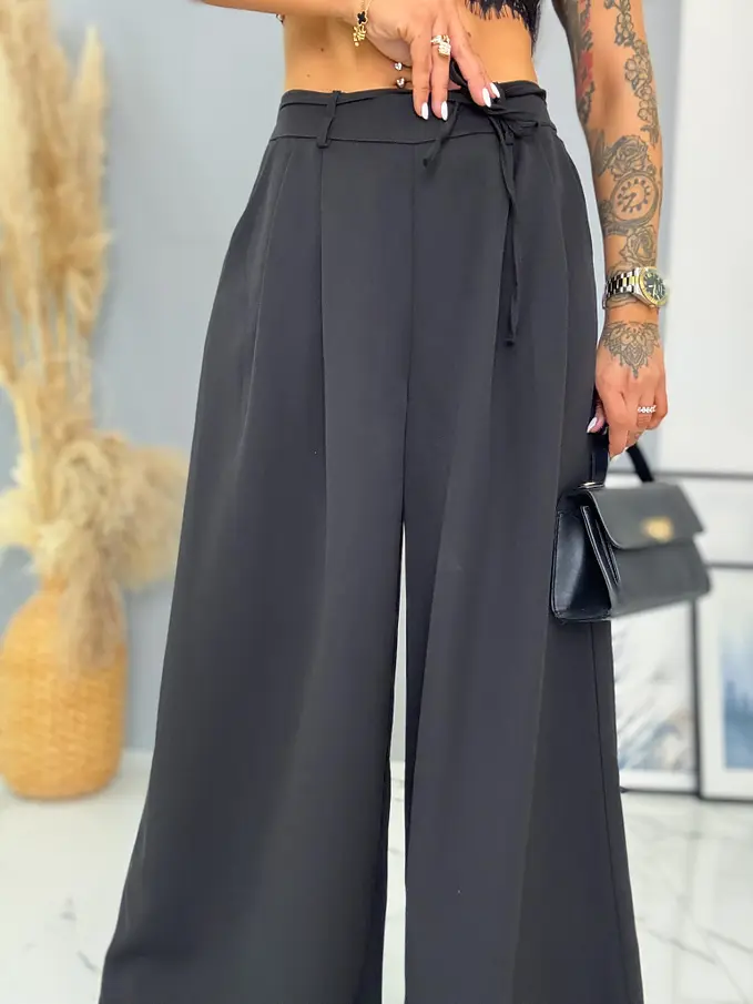 Kényelmes nadrág. Amyaga nem elasztikus. Övvel és oldalsó zsebekkel. A dereka gumis.